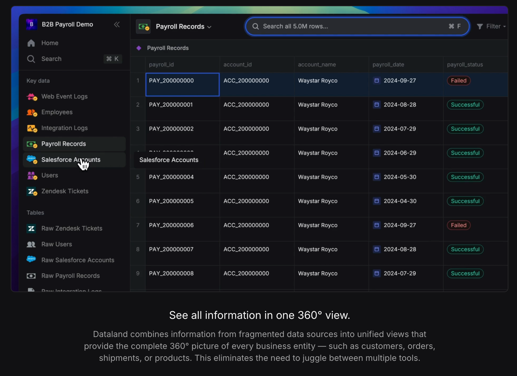 Secoda è il centro di comando per i tuoi dati. Consolida il tuo catalogo dati, gli strumenti di governance e di osservabilità per risparmiare tempo e denaro. Integrandosi con tutte le fonti di dati e le dashboard, i team di dati ottengono un'unica fonte di verità per fornire dati affidabili con meno sforzo e maggiore adozione. È il modo più veloce e semplice per qualsiasi stakeholder di dati o aziendale di trasformare le loro intuizioni in azione.