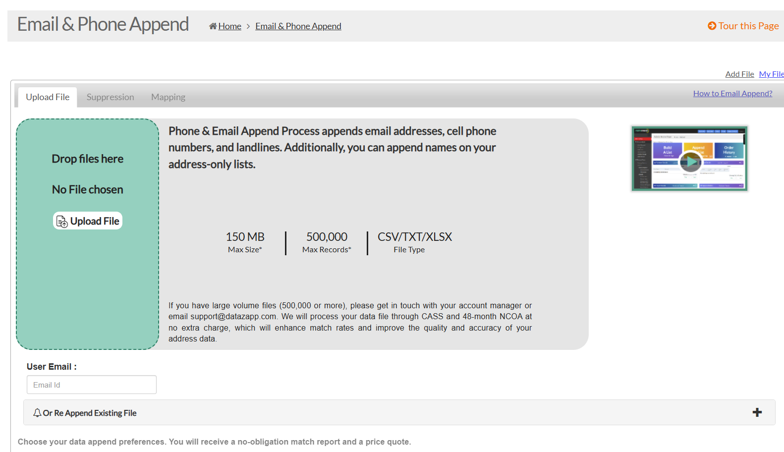 DataZapp.com è una piattaforma online affidabile che offre servizi di append email, telefonici e demografici veloci, convenienti e di alta qualità, a partire da soli 3¢ per corrispondenza, con tariffe fino a 2¢ su piani prepagati.
