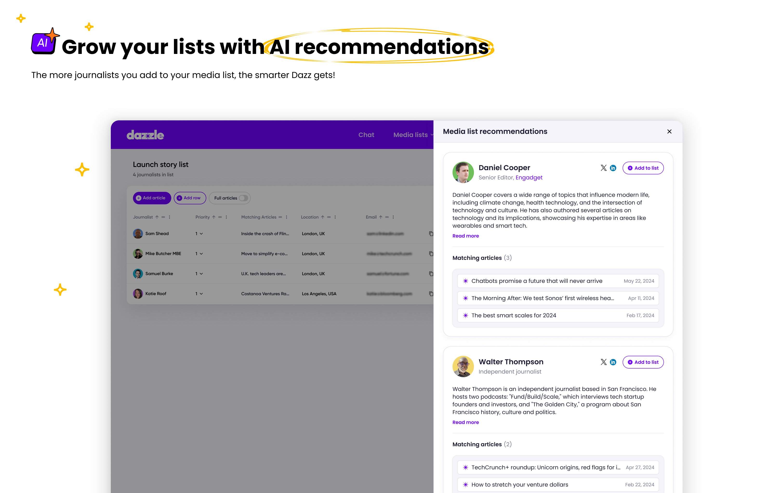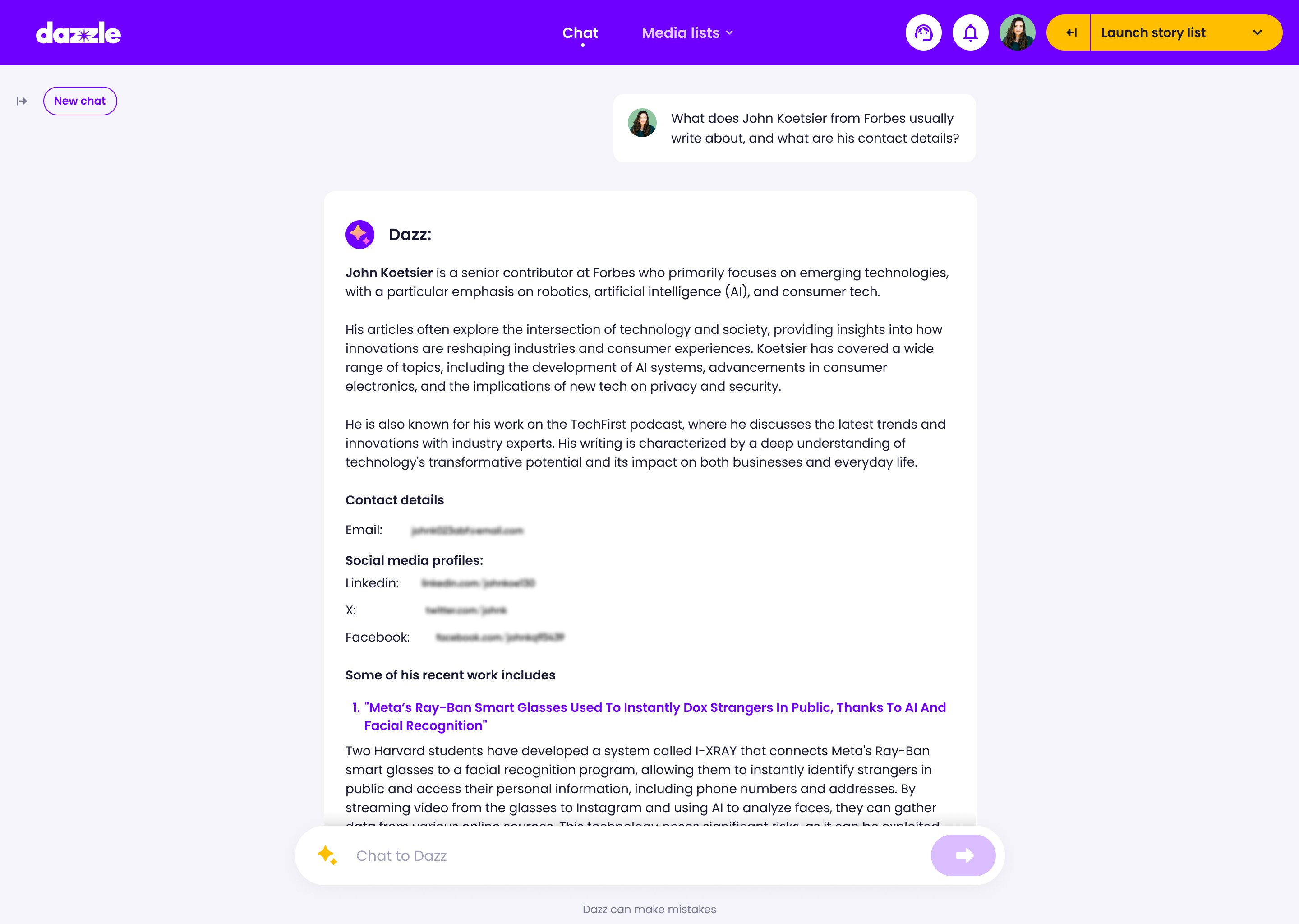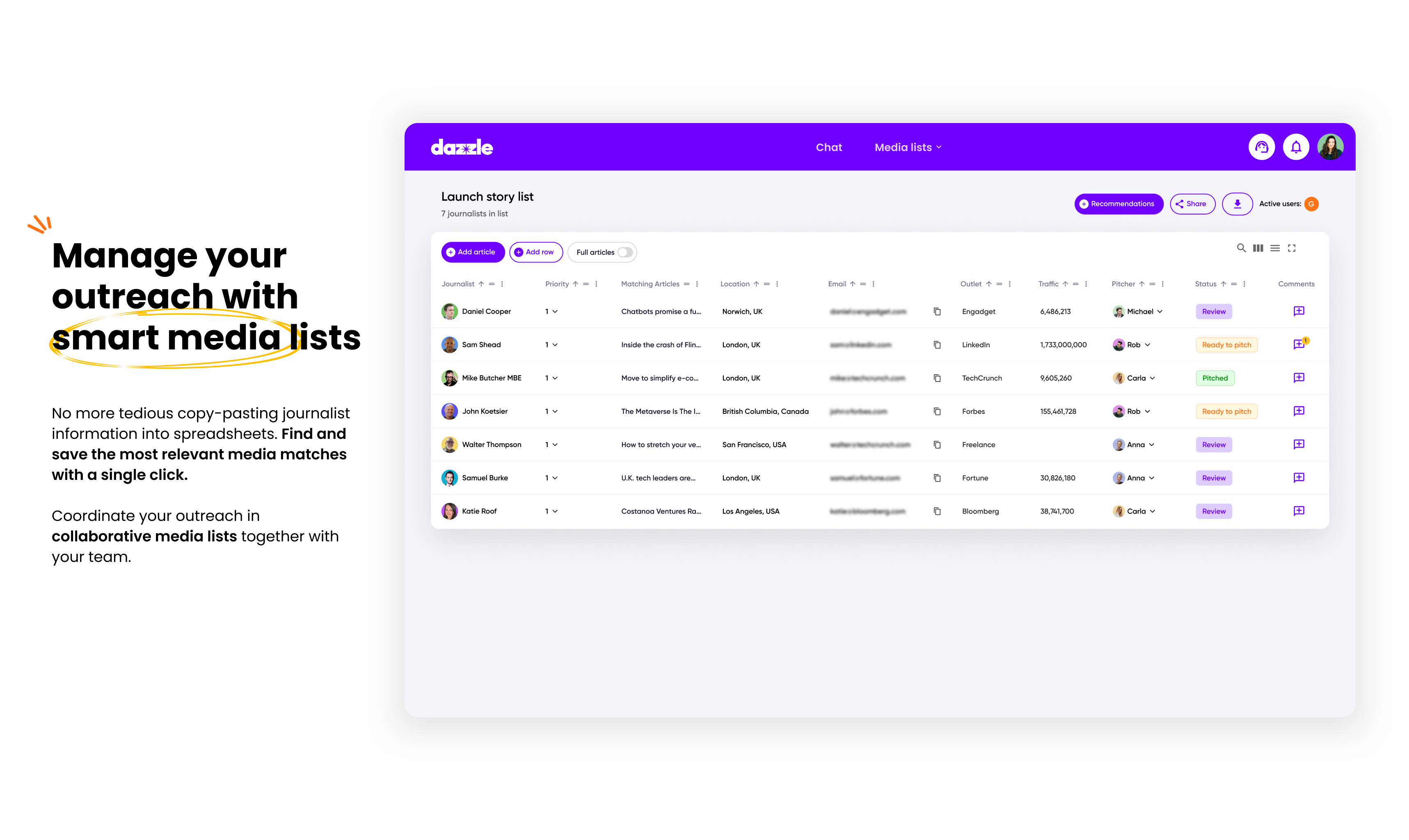 Gestisci e misura un programma di PR basato sui dati con funzionalità di ricerca iper-mirata, pitching, social media e relazioni con i giornalisti.