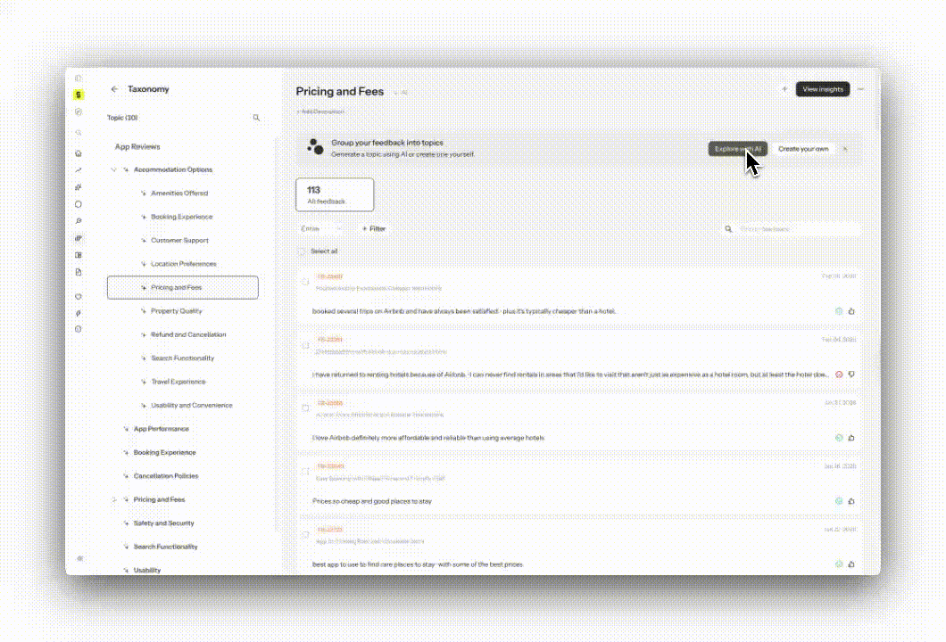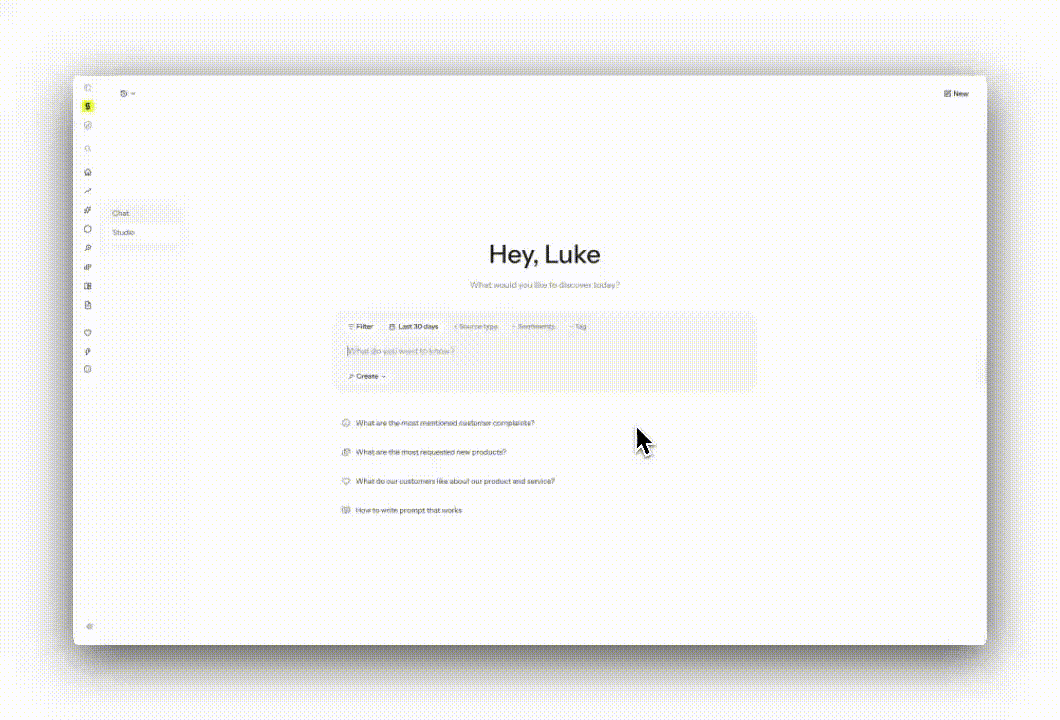 Syncly consolida il feedback da più punti di contatto in un unico spazio di lavoro, in modo che i team possano comprendere cosa stanno vivendo i clienti lungo l'intero percorso, piuttosto che esaminare ciascun canale in isolamento. Gli utenti possono porre domande in linguaggio naturale tramite un'interfaccia AI per esplorare temi, tendenze e problemi specifici, e Syncly restituisce risposte basate su citazioni dirette dei clienti e riferimenti alle fonti per supportare report basati su evidenze. Syncly applica anche l'intelligenza automatizzata per ridurre il lavoro manuale: può auto-etichettare e classificare il feedback in argomenti dettagliati, aiutando i team a identificare problemi ricorrenti, richieste di funzionalità e driver di sentiment senza passare ore nella categorizzazione.