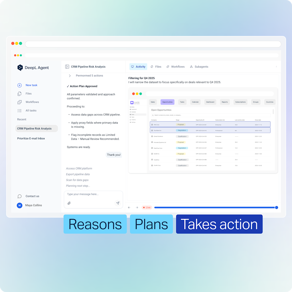 Non ci sono abbastanza recensioni di DeepL Agent per consentire a G2 di fornire informazioni per l'acquisto. Di seguito alcune alternative con più recensioni: