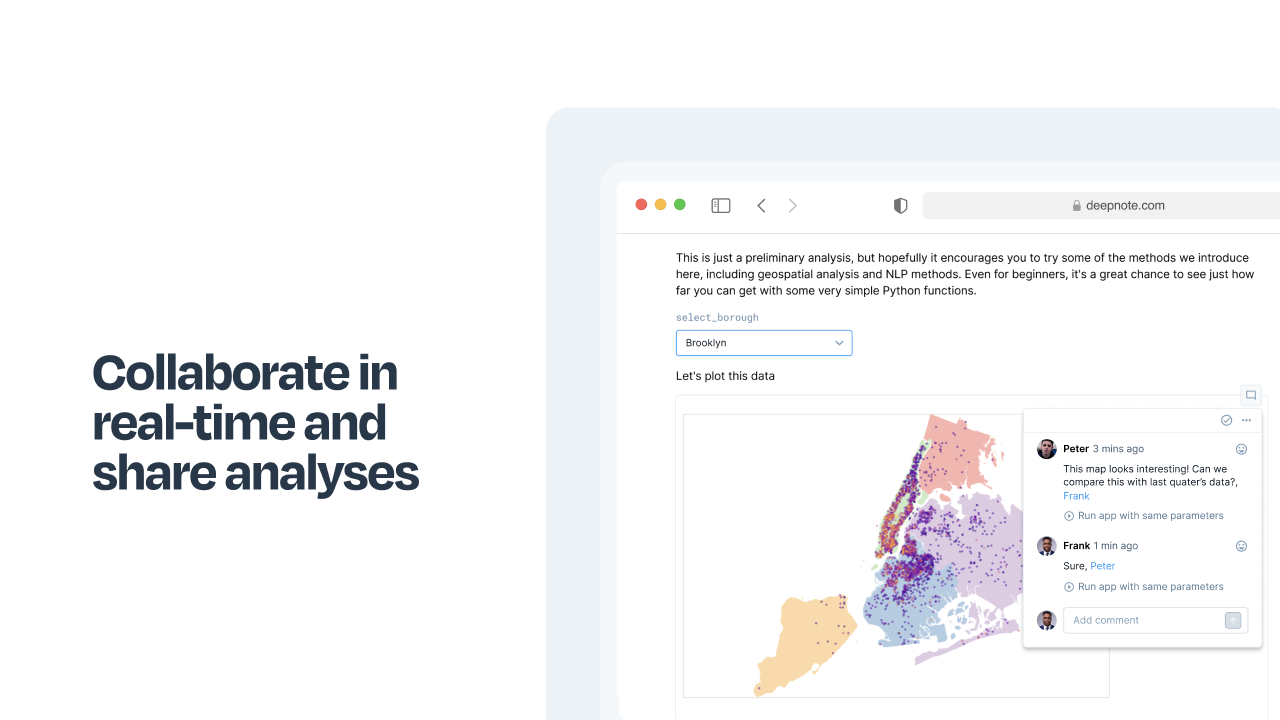 Avendo utilizzato Google Colab per molti anni, Deepnote porta le capacità a un livello superiore. Ha sbloccato maggiori intuizioni all'interno del team grazie a uno storage persistente, integrazioni esterne più facili e fantastiche capacità di visualizzazione, permettendoci di presentare i dati in modo più professionale rispetto a prima. È anche più vicino all'esperienza di utilizzo di Google Docs, dove più membri del team possono modificare in tempo reale. Facile da usare e si adatta bene alle esigenze dai junior ai senior. Recensione raccolta e ospitata su G2.com.
