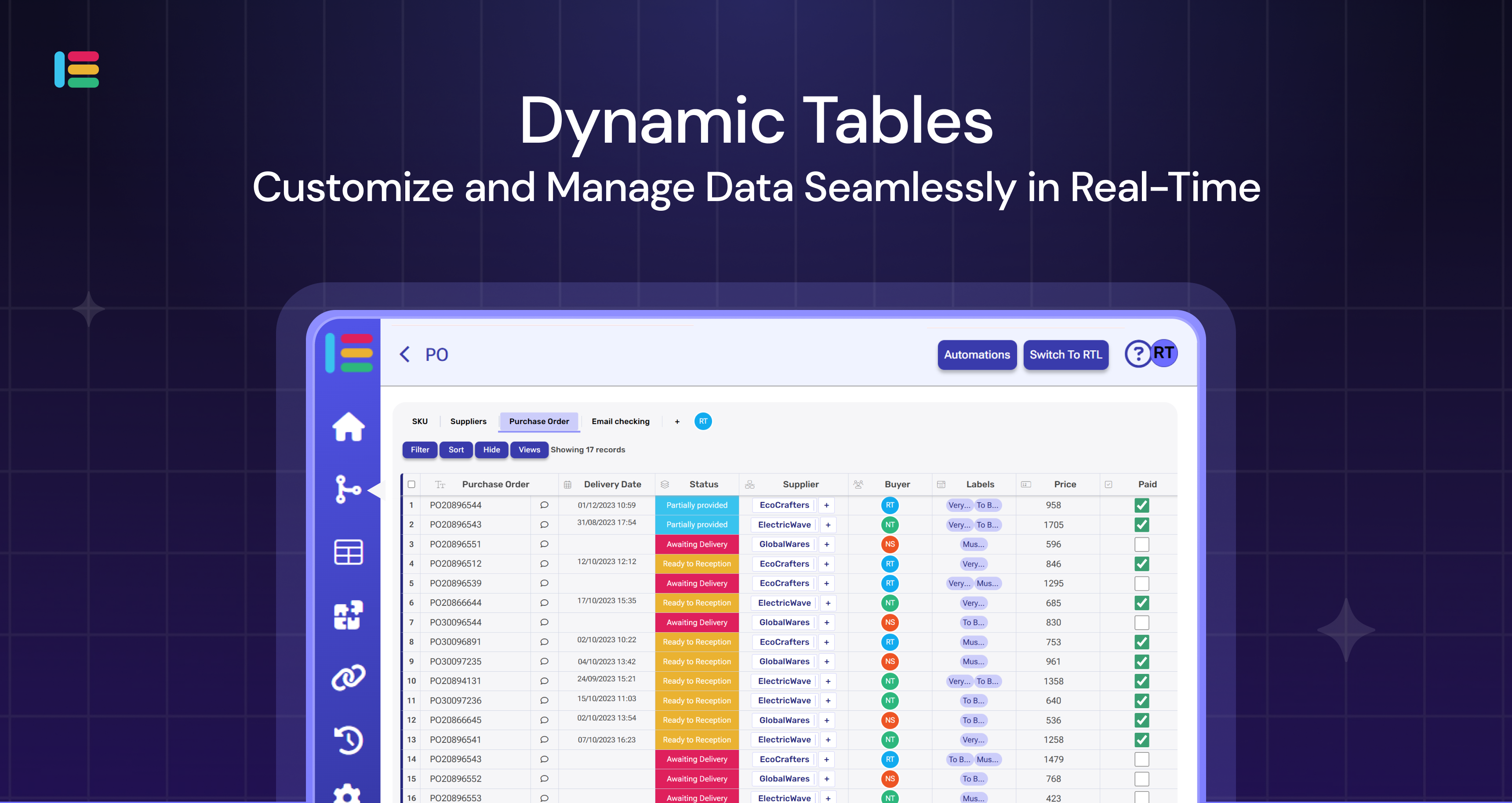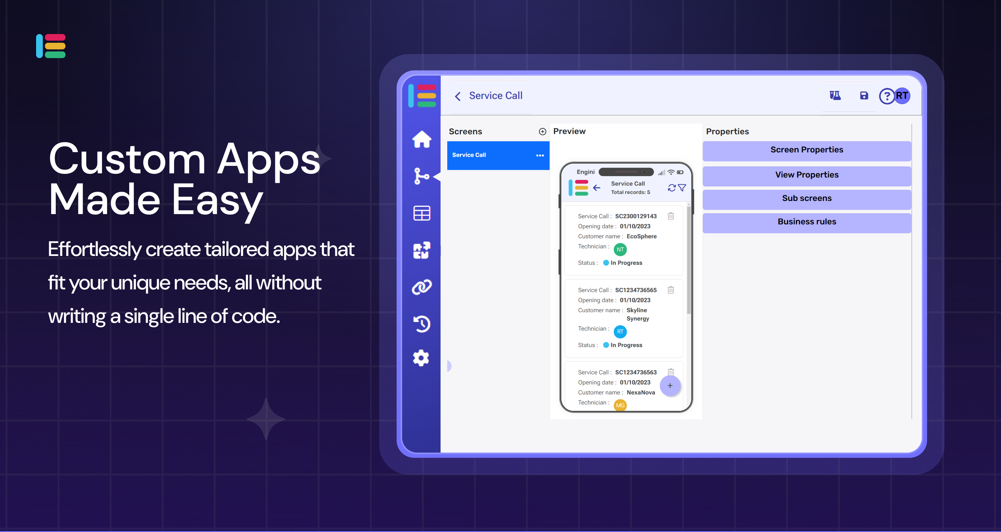 Con le capacità di creazione di app di Engini, gli utenti possono creare applicazioni su misura per adattarsi ai loro flussi di lavoro unici, supportati da tabelle dinamiche che si adattano ai requisiti di dati in tempo reale. Queste tabelle consentono una gestione efficiente dei dati, garantendo accuratezza e allineamento tra tutti i sistemi integrati.