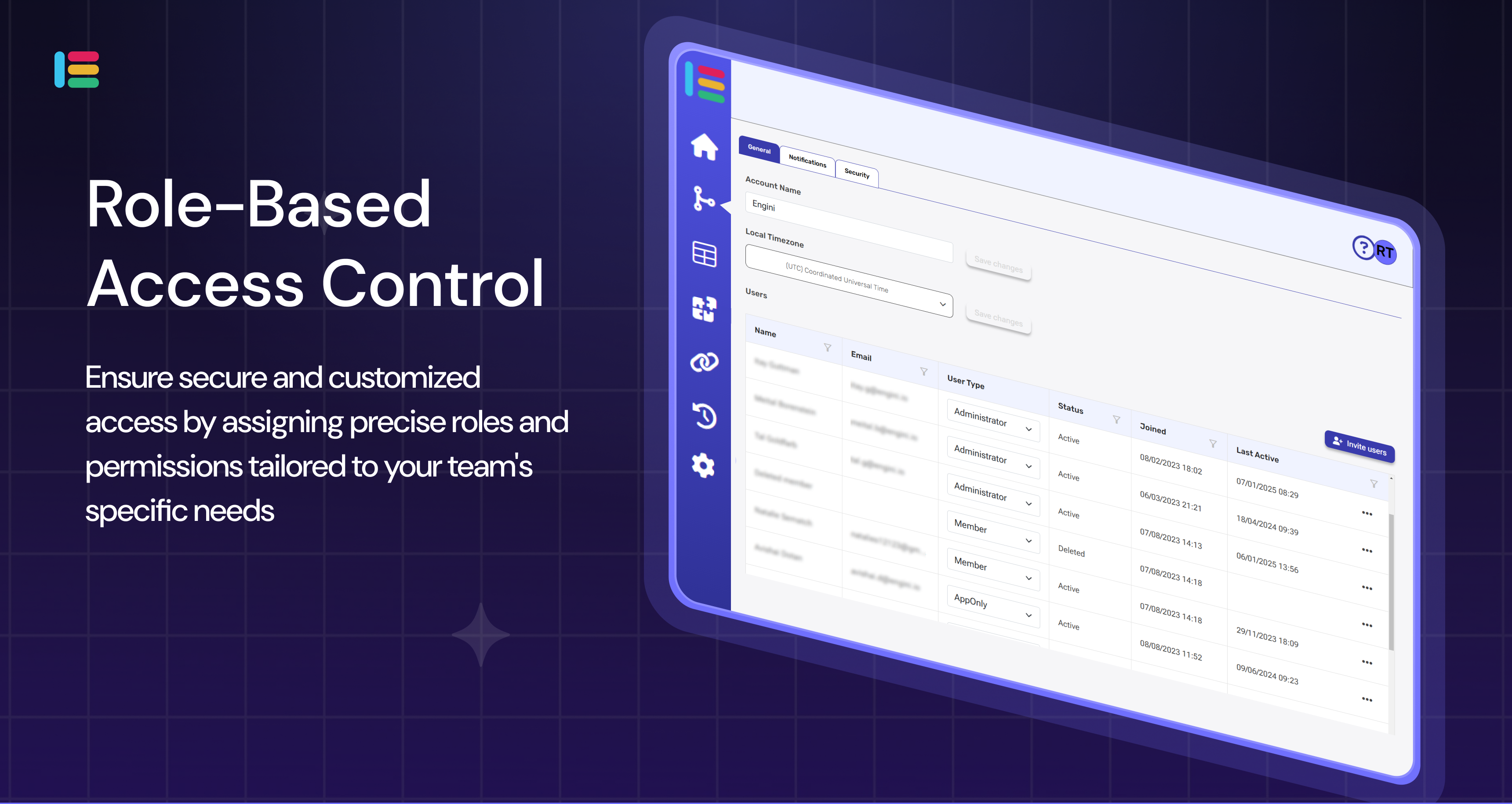 Engini è progettato per supportare le aziende in crescita con scalabilità e governance di livello enterprise. I suoi controlli di accesso basati sui ruoli, strumenti di conformità e misure di sicurezza robuste forniscono l'affidabilità e la fiducia di cui le organizzazioni hanno bisogno per scalare le operazioni con sicurezza.