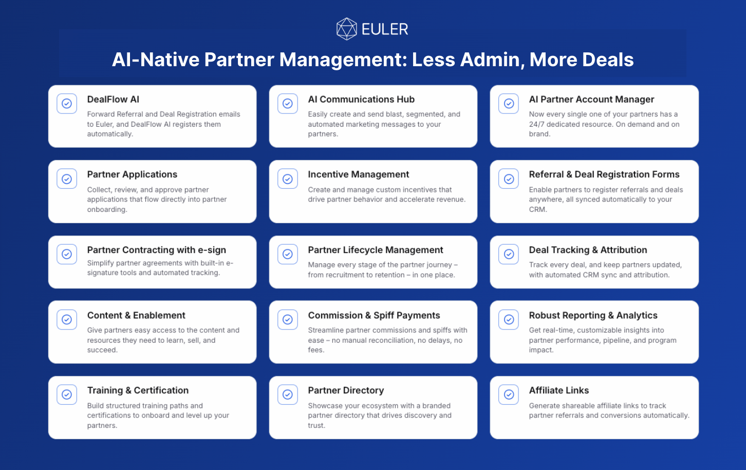 Un altro grande vantaggio è quanto Euler si integri perfettamente con il nostro CRM. I nostri rappresentanti interni possono continuare a operare completamente all'interno del CRM a cui sono abituati, mentre Euler cattura e traccia automaticamente l'attività dei partner in background. Questo allineamento riduce drasticamente l'attrito e migliora l'adozione internamente.