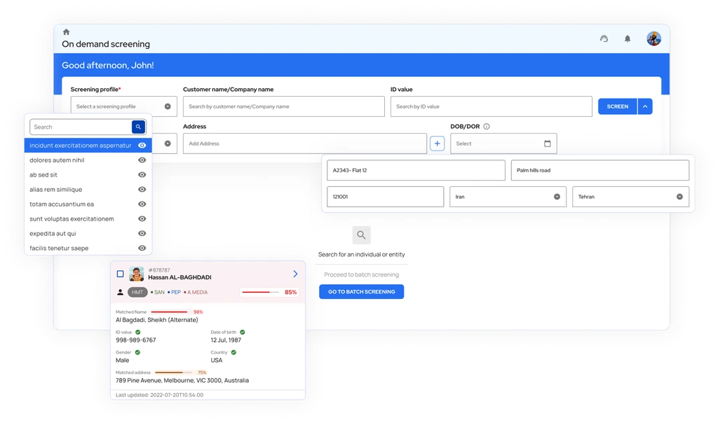 Ondato offre soluzioni di verifica dell'identità, onboarding aziendale, piattaforma dati cliente, due diligence e autenticazione su misura per adattarsi al tuo flusso di lavoro quotidiano. I nostri strumenti si adattano all'intero ciclo di vita della gestione del cliente, a partire dall'onboarding fino al monitoraggio continuo degli utenti. È una soluzione unica, sia che tu sia preoccupato per la conformità o che stia cercando una piattaforma di gestione dei dati più user-friendly.