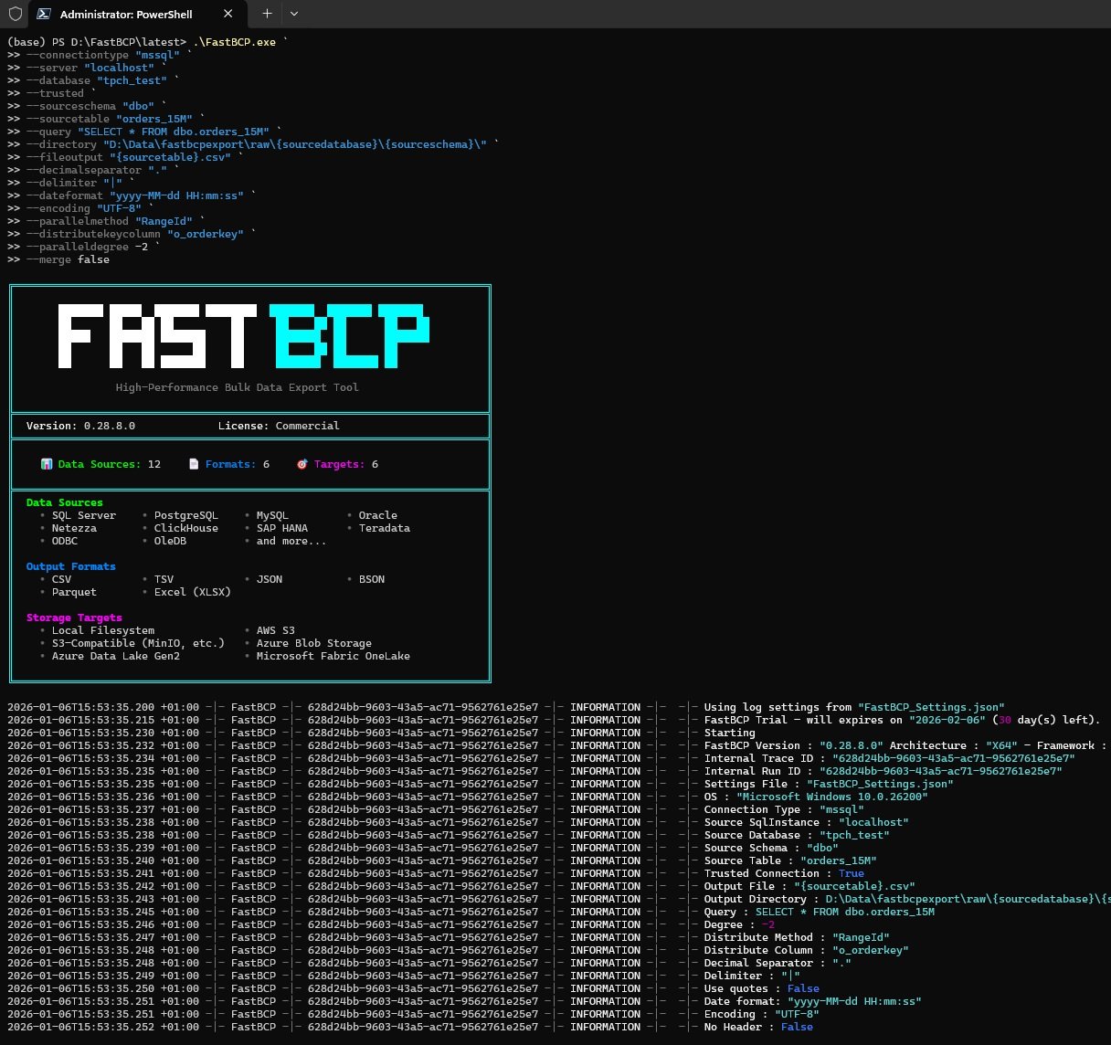 FastBCP è uno strumento CLI di esportazione di database parallelo e ultraveloce per flussi di lavoro dati moderni.