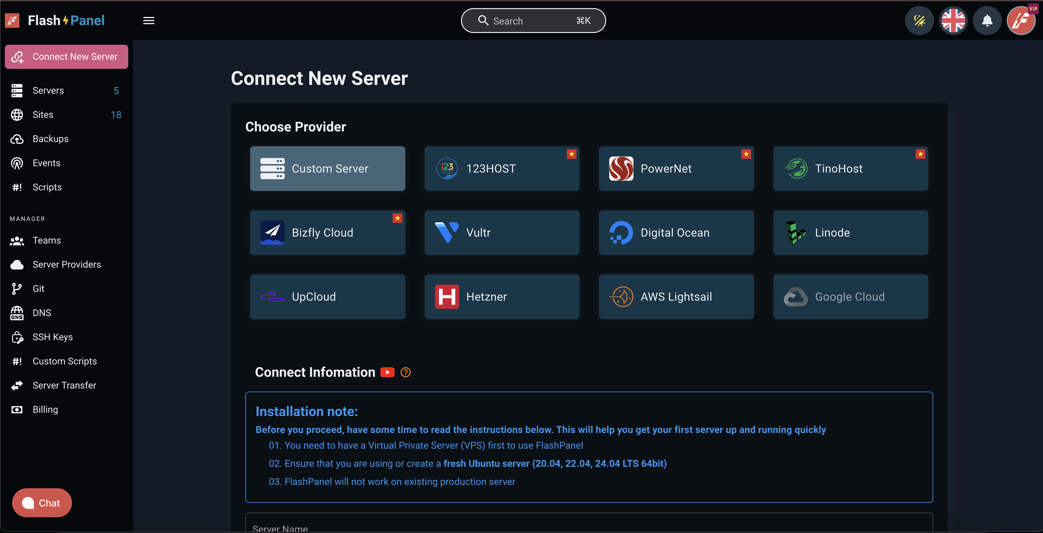 Ho utilizzato FlashPanel negli ultimi 2 anni per gestire la nostra infrastruttura cloud su più istanze VPS, ed è diventato una parte essenziale del nostro flusso di lavoro DevOps. FlashPanel è una piattaforma di gestione server basata su cloud che si propone come un'alternativa moderna ai pannelli di controllo tradizionali come cPanel e DirectAdmin, con un forte focus sull'orchestrazione multi-server e l'automazione basata su API.