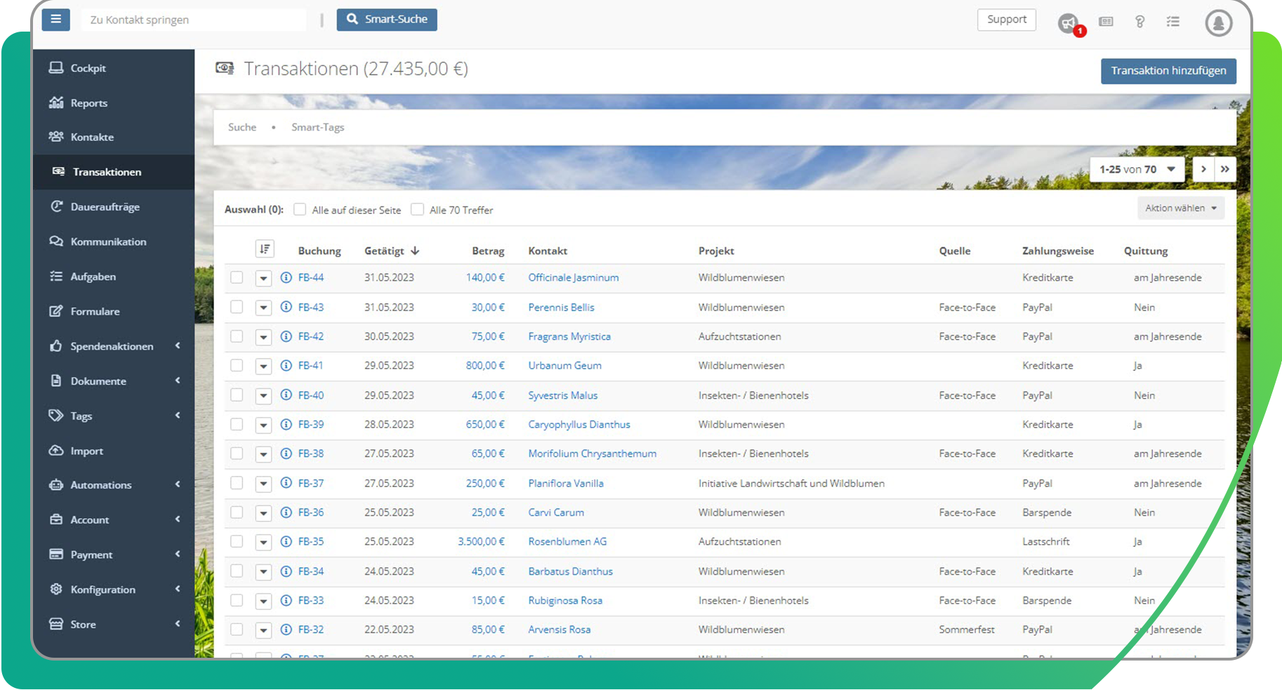 _Pagamenti: Gestire tutti i principali metodi di pagamento, inclusi i pagamenti ricorrenti, direttamente all'interno del CRM. Automatizzare la riconciliazione delle transazioni bancarie, gli addebiti diretti e i mandati SEPA.