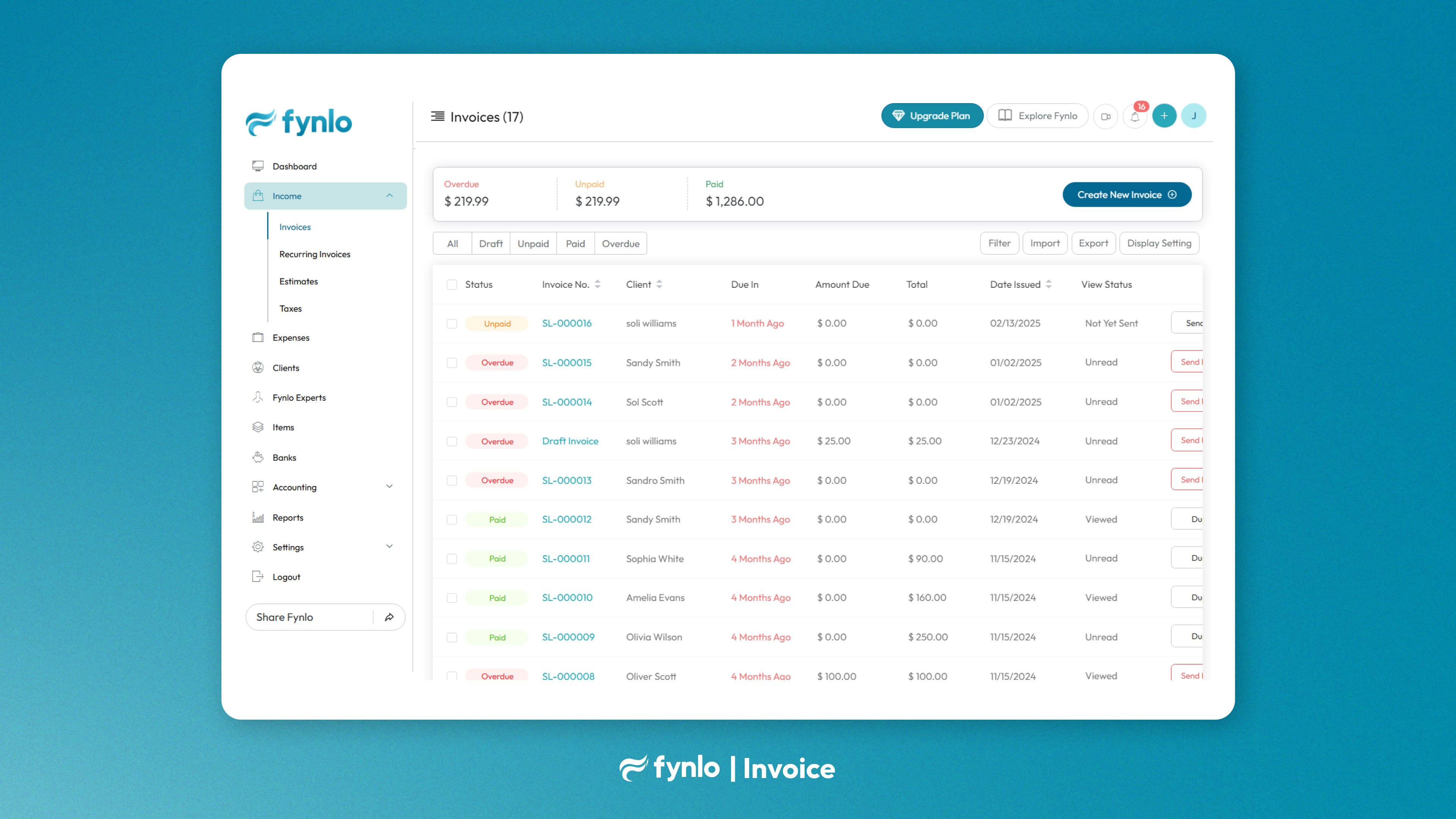 Adoro quanto Fynlo renda semplice la fatturazione e il monitoraggio delle spese. Il cruscotto è chiaro e facile da usare, e l'automazione per le fatture ricorrenti mi fa risparmiare molto tempo. Inoltre, si integra bene con gli altri strumenti che uso! Recensione raccolta e ospitata su G2.com.