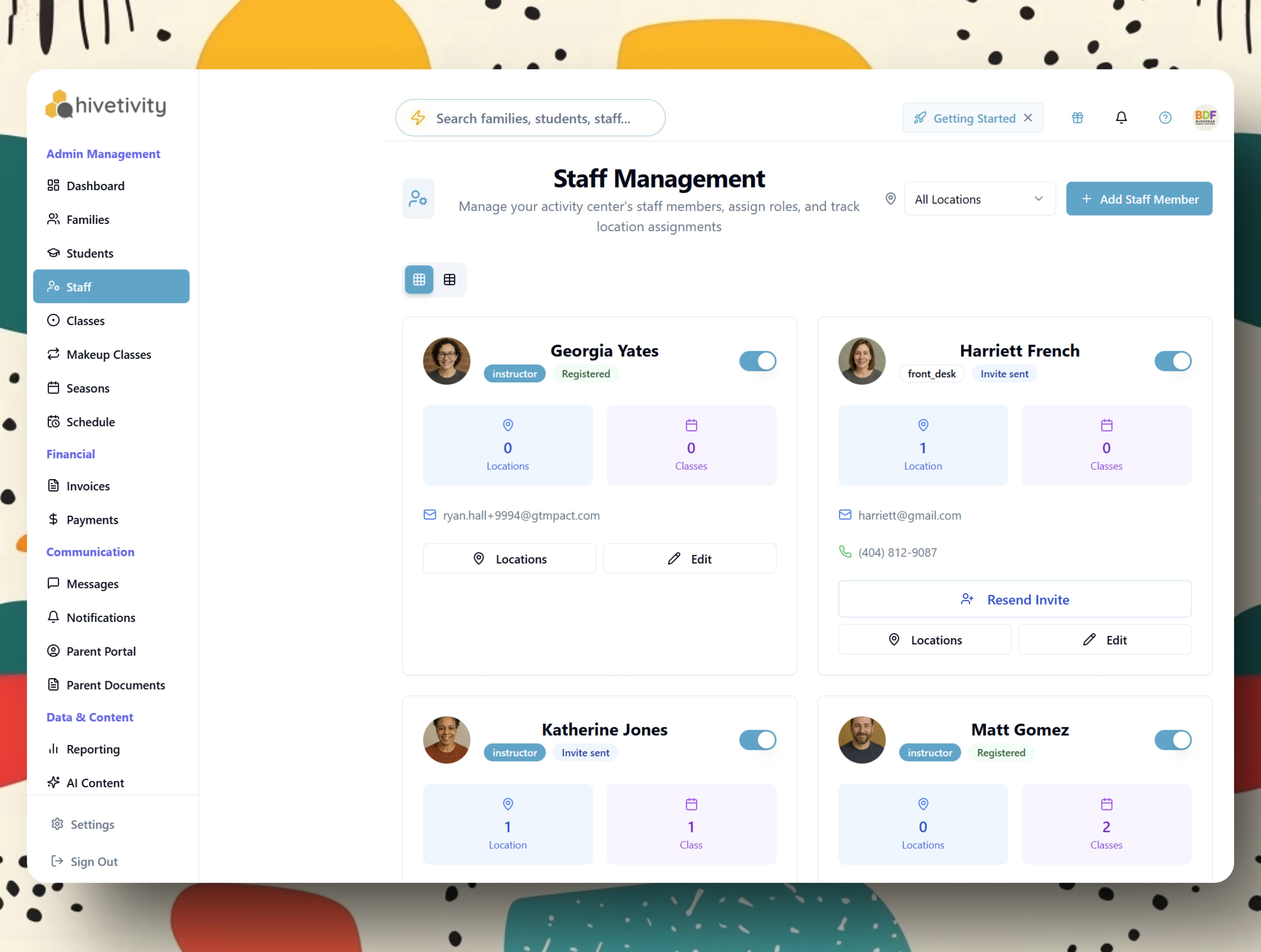 Il software di registrazione e gestione di campi e classi di ACTIVE ti consente di supervisionare tutte le tue classi e il personale con facilità—da un unico posto—risparmiando tempo e fatica.