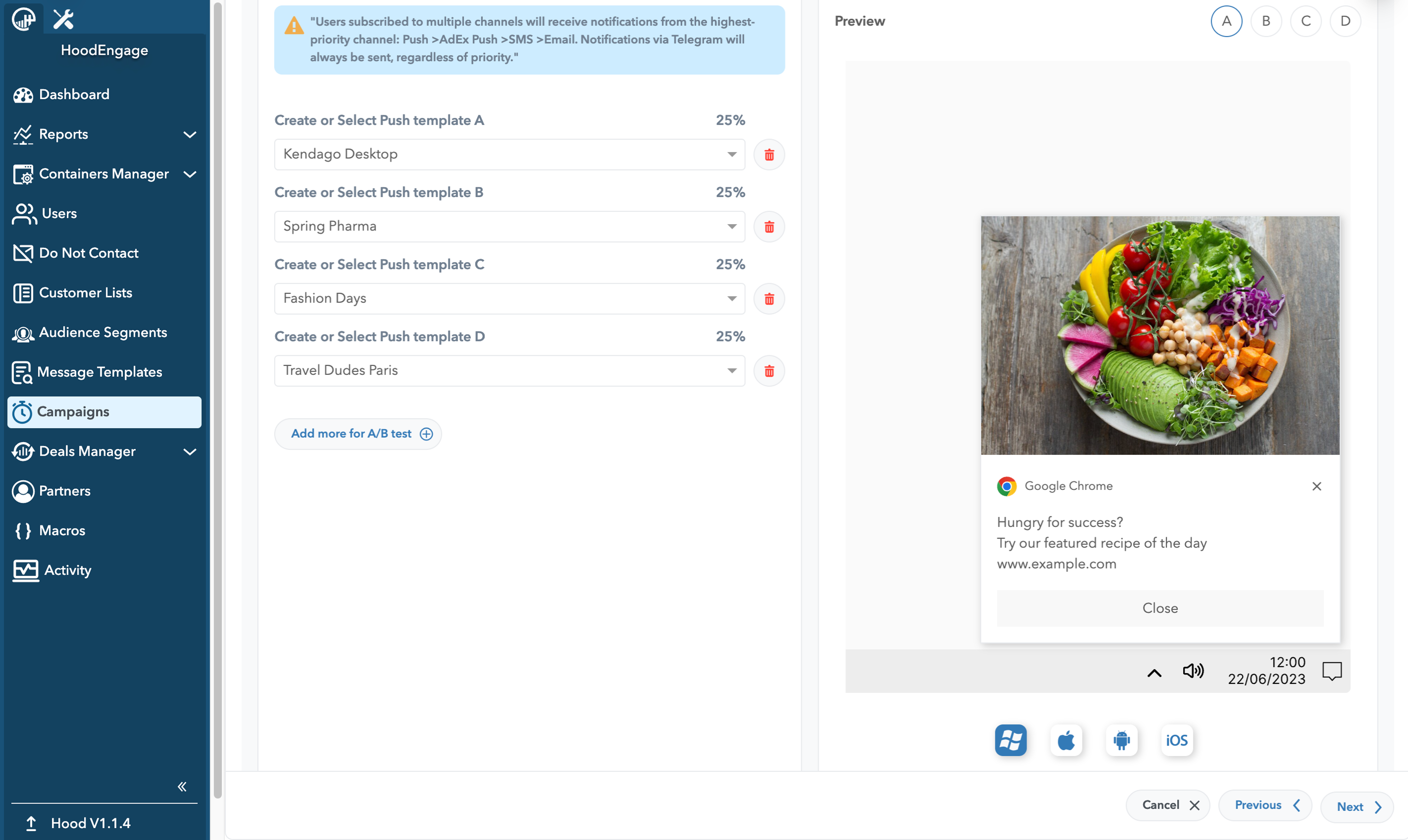Piattaforma di messaggistica integrata che fornisce comunicazione agli utenti su tutti i dispositivi con Email, SMS, Web Push, SMTP e altro ancora