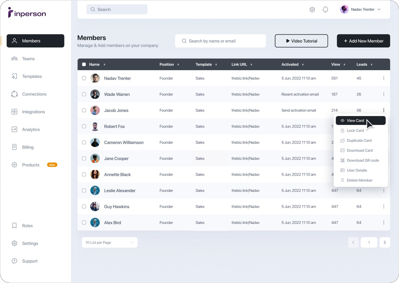 Wave offre funzionalità di gestione amministrativa che consentono alle aziende di mantenere e aggiornare i profili dei loro biglietti da visita digitali online. Con un cruscotto centralizzato, le aziende possono aggiungere o rimuovere dipendenti, aggiornare i dettagli di contatto e apportare modifiche al design in tutta l'organizzazione. Questo assicura coerenza e professionalità in tutti i biglietti da visita digitali associati all'azienda.