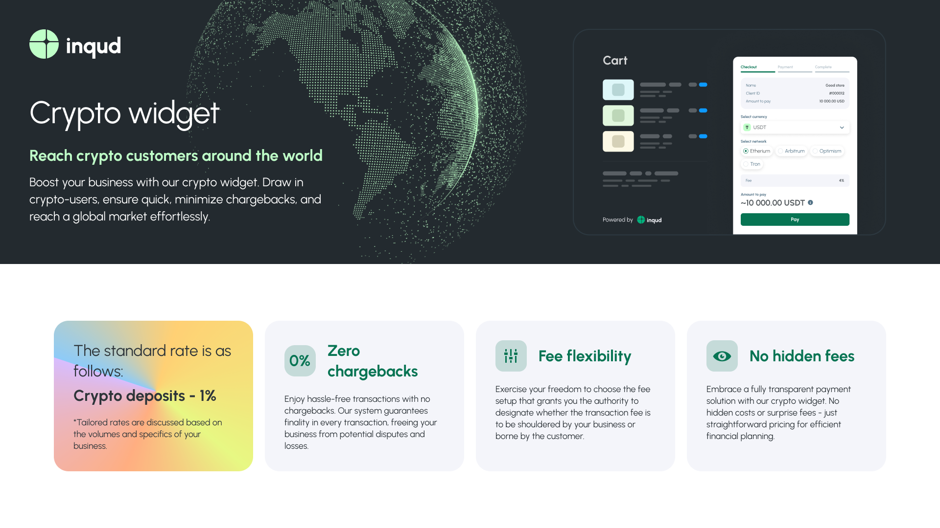 Aiutiamo a ricevere pagamenti da chiunque nel mondo. In questa fase, la piattaforma supporta tutte le principali criptovalute: BTC, USDT, ETH, TRX, Litecoin, Dash.