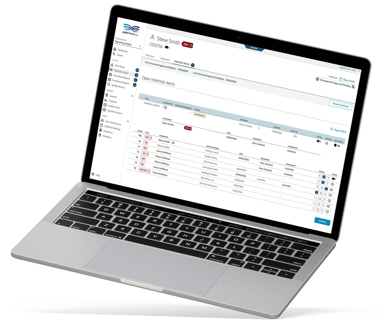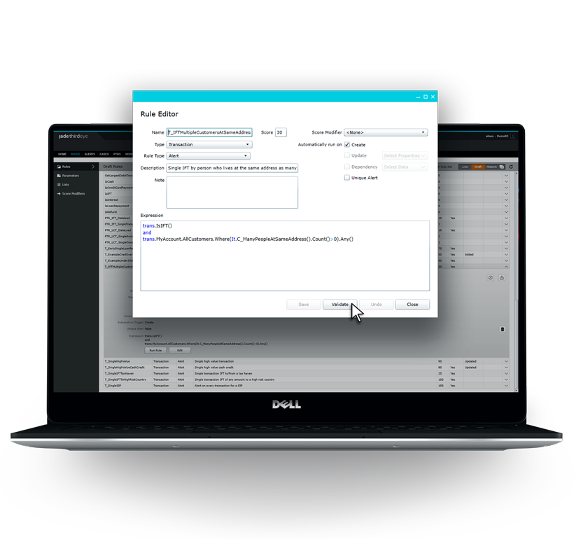 Jade ThirdEye ha ben sincronizzato le nostre procedure di conformità AML. Invia avvisi basati sul monitoraggio delle attività delle transazioni e dei clienti, oltre alla gestione dei casi per risparmiare tempo al nostro team per condurre indagini approfondite. Recensione raccolta e ospitata su G2.com.