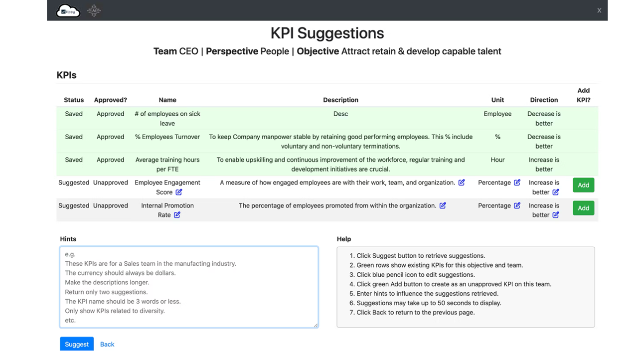 Kippy fornisce un ambiente integrato e senza soluzione di continuità per costruire, distribuire e gestire scorecard a tutti i livelli organizzativi. La sua struttura rende la gestione degli KPI chiara e coerente, specialmente con funzionalità come calcoli automatici, relazioni a cascata e la capacità di monitorare i progressi in tempo reale. Apprezzo particolarmente come Kippy semplifichi modelli di governance complessi e permetta ai team di allineare i loro obiettivi, iniziative e KPI senza sforzo. Aumenta la trasparenza, migliora la responsabilità e garantisce che tutti—dalle entità strategiche ai dipartimenti e agli individui—possano comprendere facilmente il loro contributo alla performance complessiva. Recensione raccolta e ospitata su G2.com.