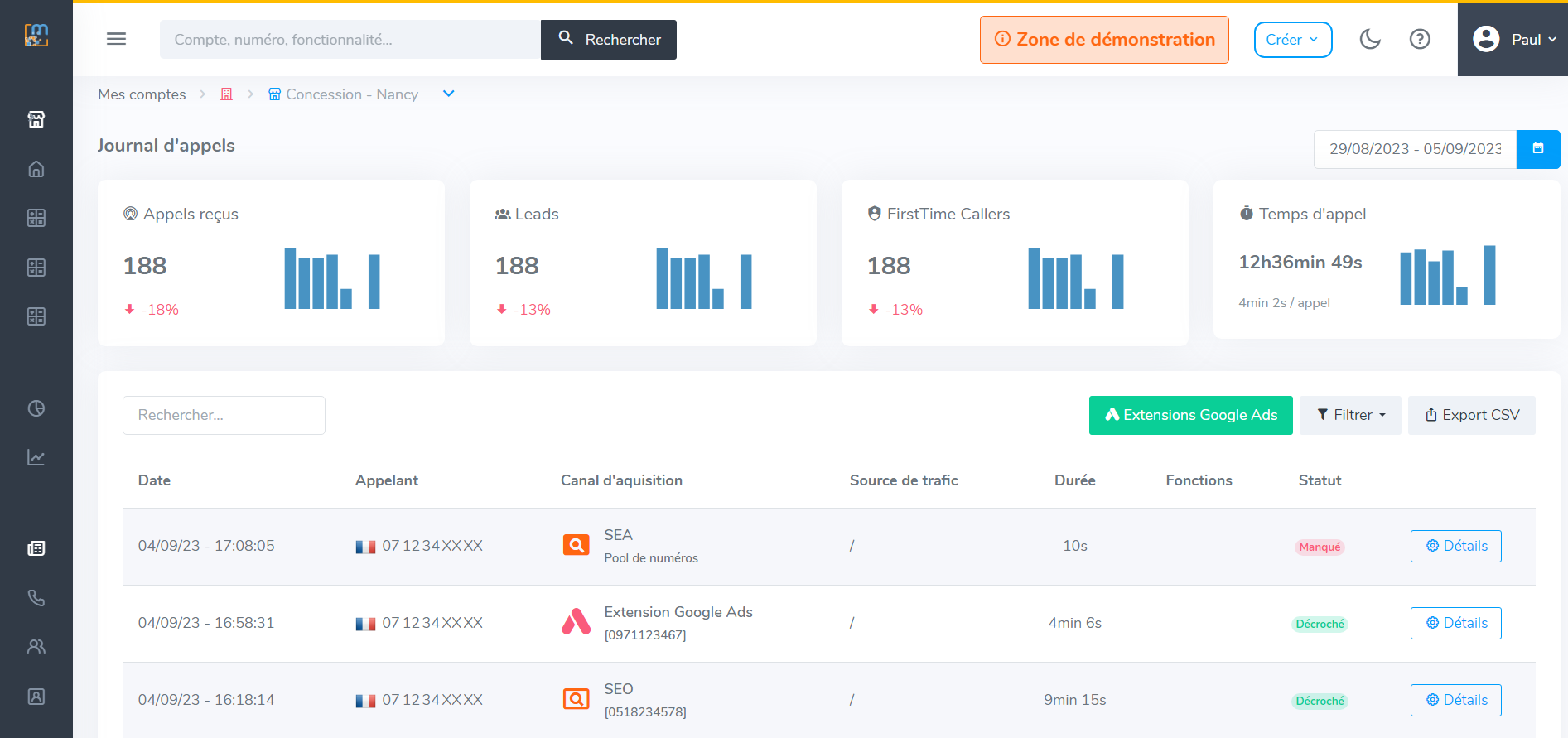 • Tracciamento delle chiamate, con i dati di attribuzione online-offline più utili