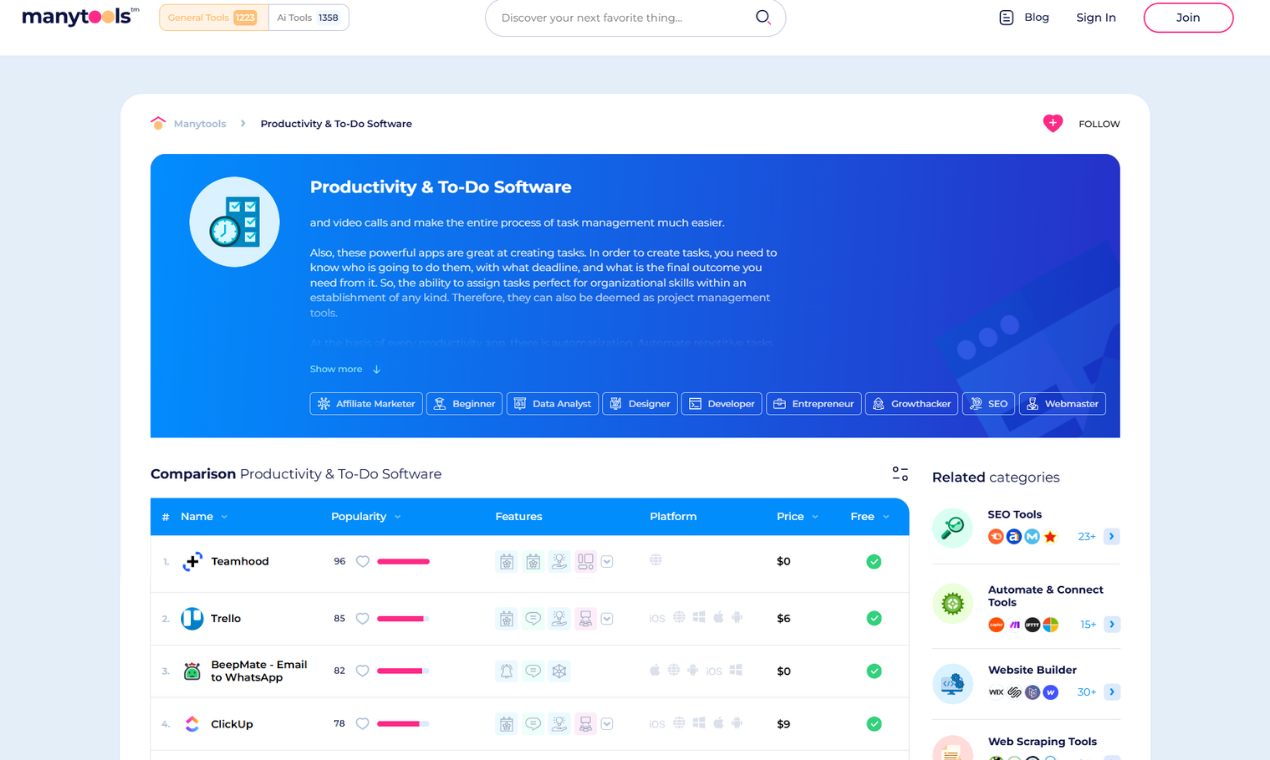 Non ci sono abbastanza recensioni di ManyTools per consentire a G2 di fornire informazioni per l'acquisto. Di seguito alcune alternative con più recensioni: