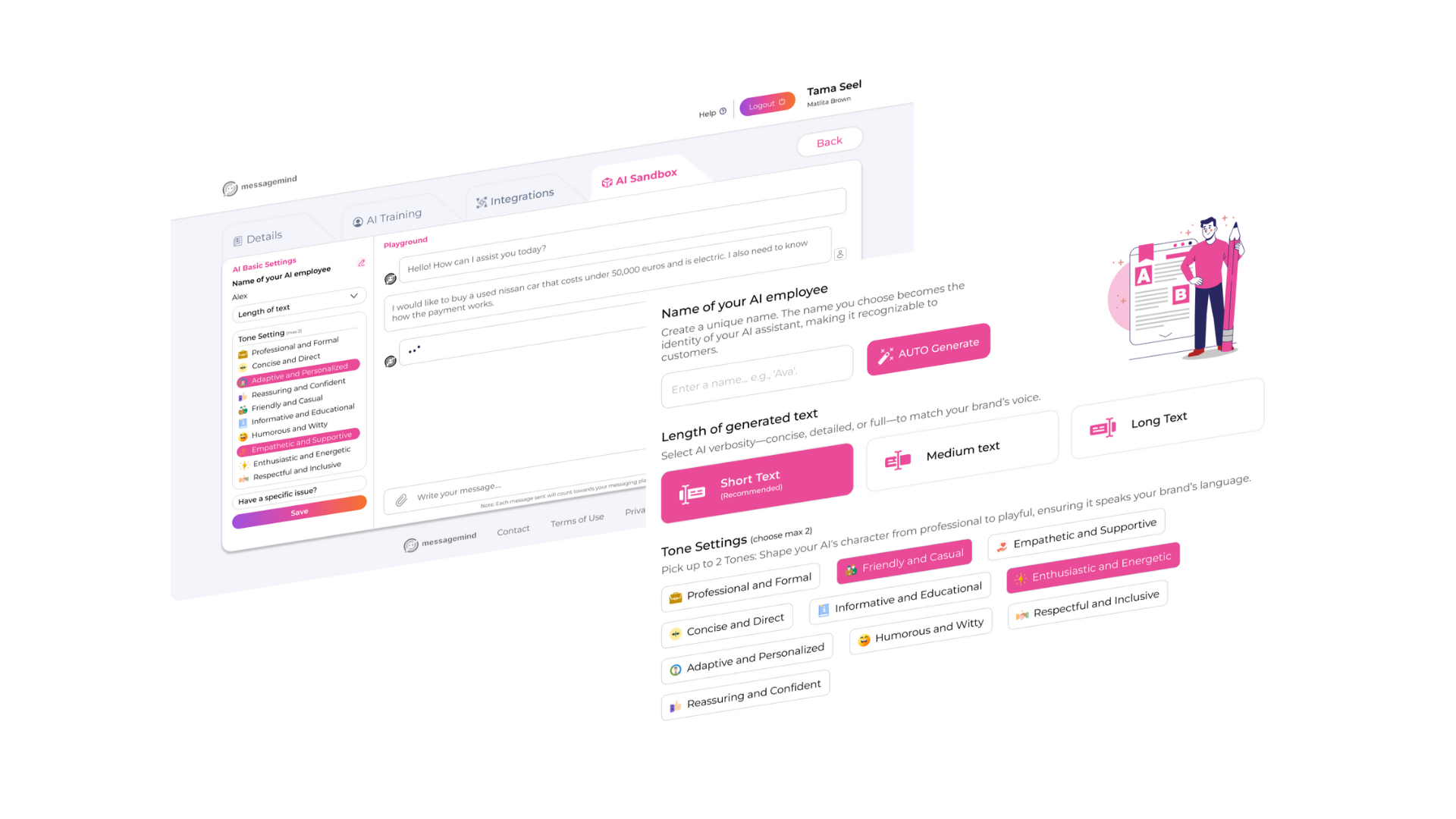 In MessageMind, abbiamo rivoluzionato il supporto al servizio clienti sfruttando la potenza dell'IA per offrire interazioni completamente simili a quelle umane, in grado di gestire un ampio spettro di esigenze dei clienti, dal supporto alle vendite. Le nostre soluzioni guidate dall'IA sono integrate senza soluzione di continuità su piattaforme di comunicazione popolari come WhatsApp, Instagram, Messenger e direttamente sul sito web della tua azienda, garantendo che i tuoi clienti possano raggiungerti ovunque si trovino. Siamo orgogliosi di offrire funzionalità avanzate come la casella di posta API di WhatsApp Business, la casella di posta di Instagram e la casella di posta di Messenger, creando un'esperienza omnicanale che porta un valore significativo alle aziende. Il nostro supporto AI all'avanguardia è in grado di comprendere e parlare in oltre 80 lingue, fornendo un servizio 24 ore su 24 per garantire che nessuna richiesta dei clienti rimanga senza risposta. Che tu sia un individuo, un piccolo team o una grande impresa, i nostri piani tariffari flessibili sono progettati per soddisfare le tue esigenze, migliorando le interazioni con i clienti e guidando decisioni più intelligenti e basate sui dati per la tua azienda.