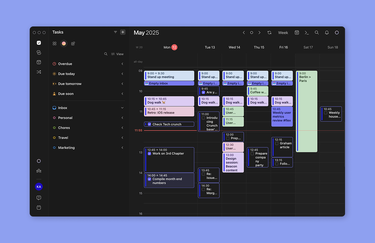 Tra le visualizzazioni che vanno dal giorno all'agenda mensile, puoi visualizzare rapidamente i tuoi eventi e compiti importanti e modificare qualsiasi cosa desideri. Uso principalmente il calendario iCloud, ma integrare il mio calendario di lavoro di Gmail senza mescolare la mia vita personale e professionale è fantastico. L'implementazione dell'IA è cresciuta molto bene, poiché è passata dall'aiutarti a impostare la frequenza dei compiti ripetitivi senza dover usare formule complicate, a lavorare con diverse integrazioni per aggiungere eventi esterni al calendario. Sono felice di aver ottenuto il pacchetto sostenitore di 2 anni. Recensione raccolta e ospitata su G2.com.