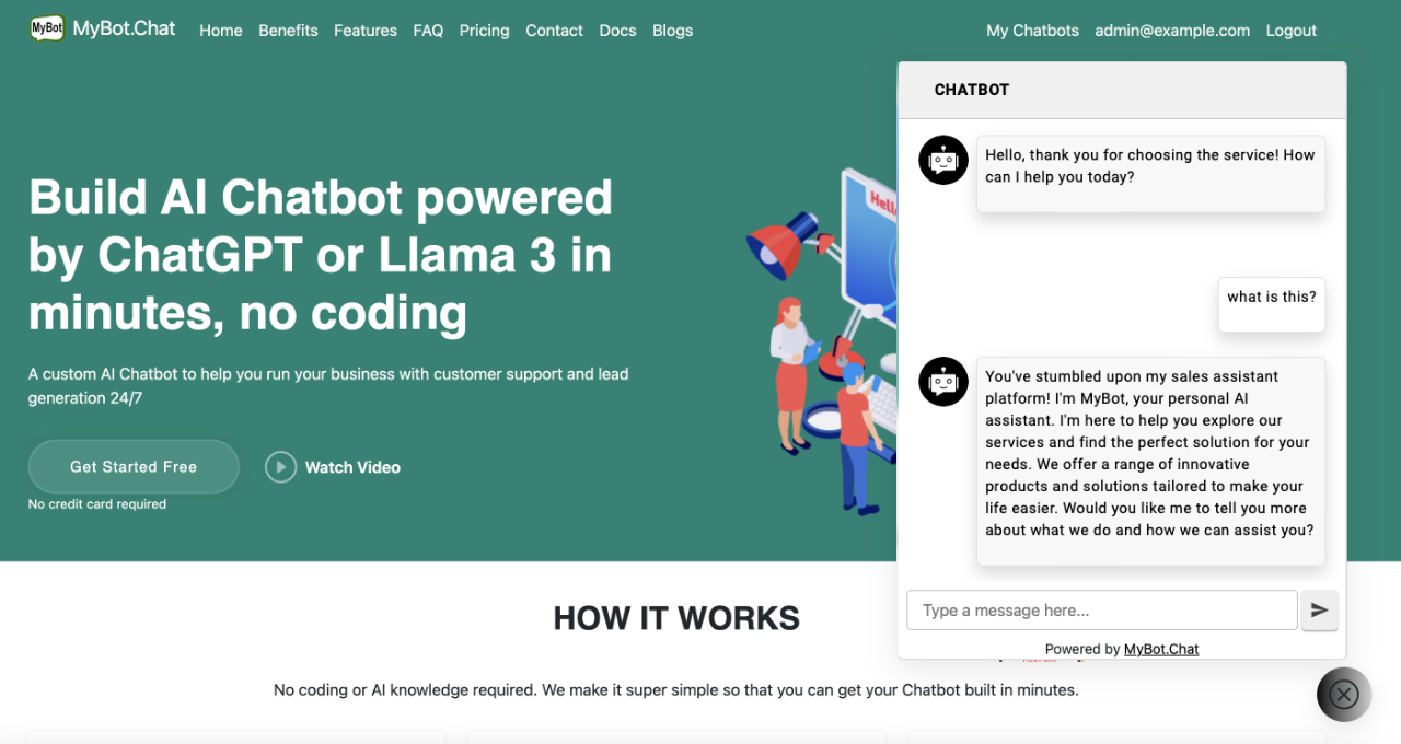 MyBot.Chat è una piattaforma SaaS (Software as a Service) per chatbot che facilita la creazione di chatbot basati su AI per il supporto clienti e la generazione di lead. Si concentra sull'abilitazione dell'utilizzo di chatbot per gestire le attività con supporto clienti e generazione di lead 24/7.