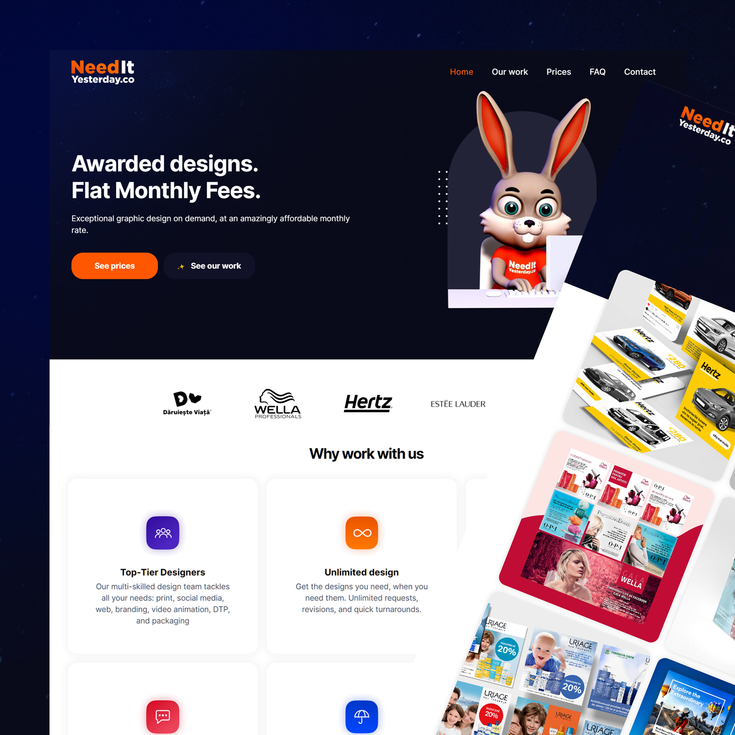 Flocksy fornisce talenti di design d'élite alle aziende di tutto il mondo senza costi generali. Con i nostri abbonamenti a tariffa fissa, ottieni un lavoro coerente e affidabile consegnato da un team dedicato di professionisti creativi di alto livello. I nostri creativi selezionati trasformano le tue idee in immagini che catturano e ispirano, da illustrazioni personalizzate e grafiche in linea con il marchio a video accattivanti e altro ancora. Unisciti oggi per contenuti di alta qualità su richiesta, supportati da un team costruito per sostenere la tua crescita.