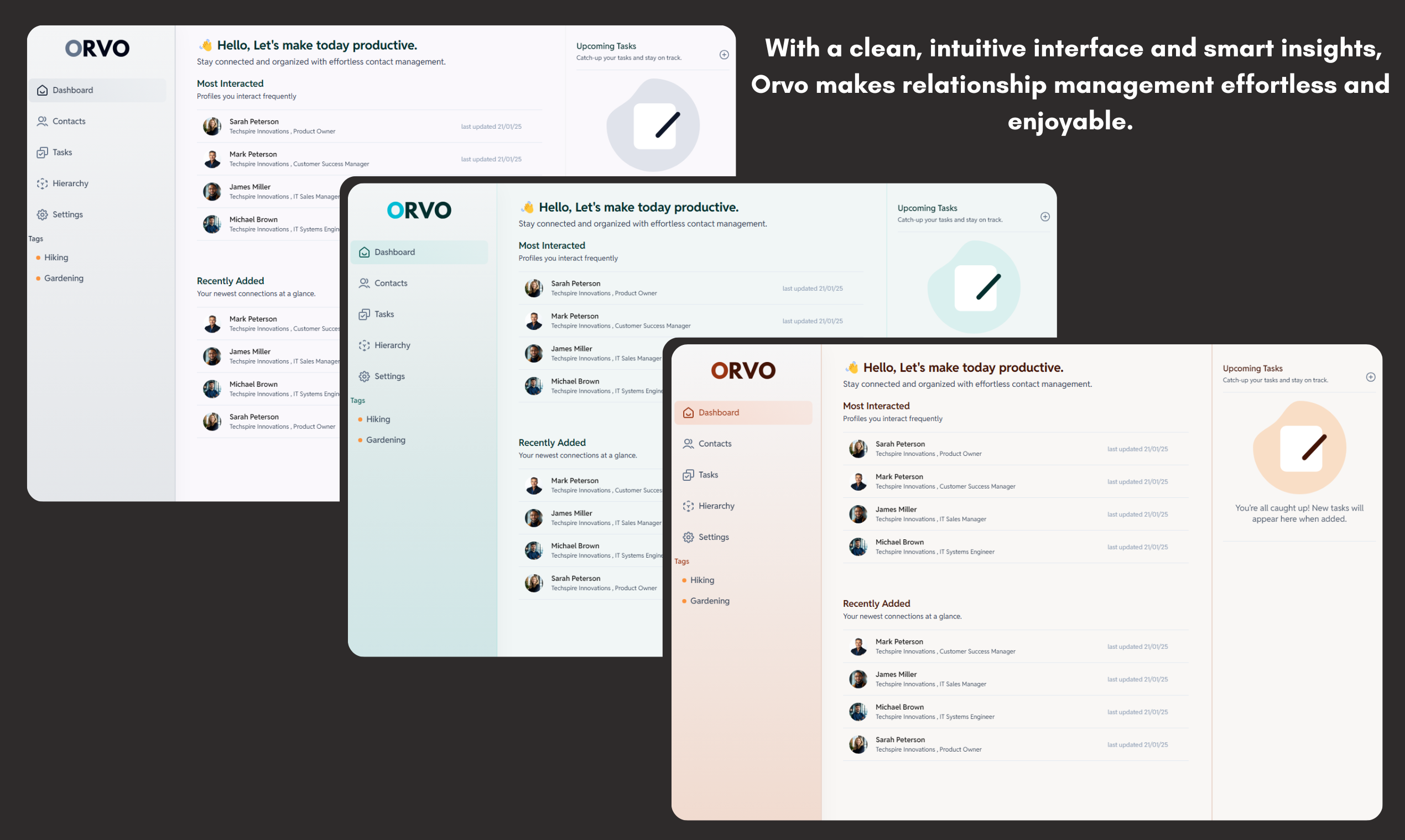 Orvo ha migliorato significativamente il modo in cui il nostro team collabora nelle comunicazioni quotidiane con i clienti. La funzione dei profili di contatto condivisi mantiene tutti sincronizzati, indipendentemente da dove stiano lavorando. Ciò che spicca davvero è l'AI di Orvo: suggerisce azioni intelligenti, automatizza le email di routine, genera trascrizioni e riassunti delle riunioni, aiuta a dare priorità ai compiti in base all'urgenza e all'impatto. È come avere un membro del team in più che è sempre un passo avanti. Questo ci ha aiutato a diventare più produttivi e meglio organizzati. Recensione raccolta e ospitata su G2.com.