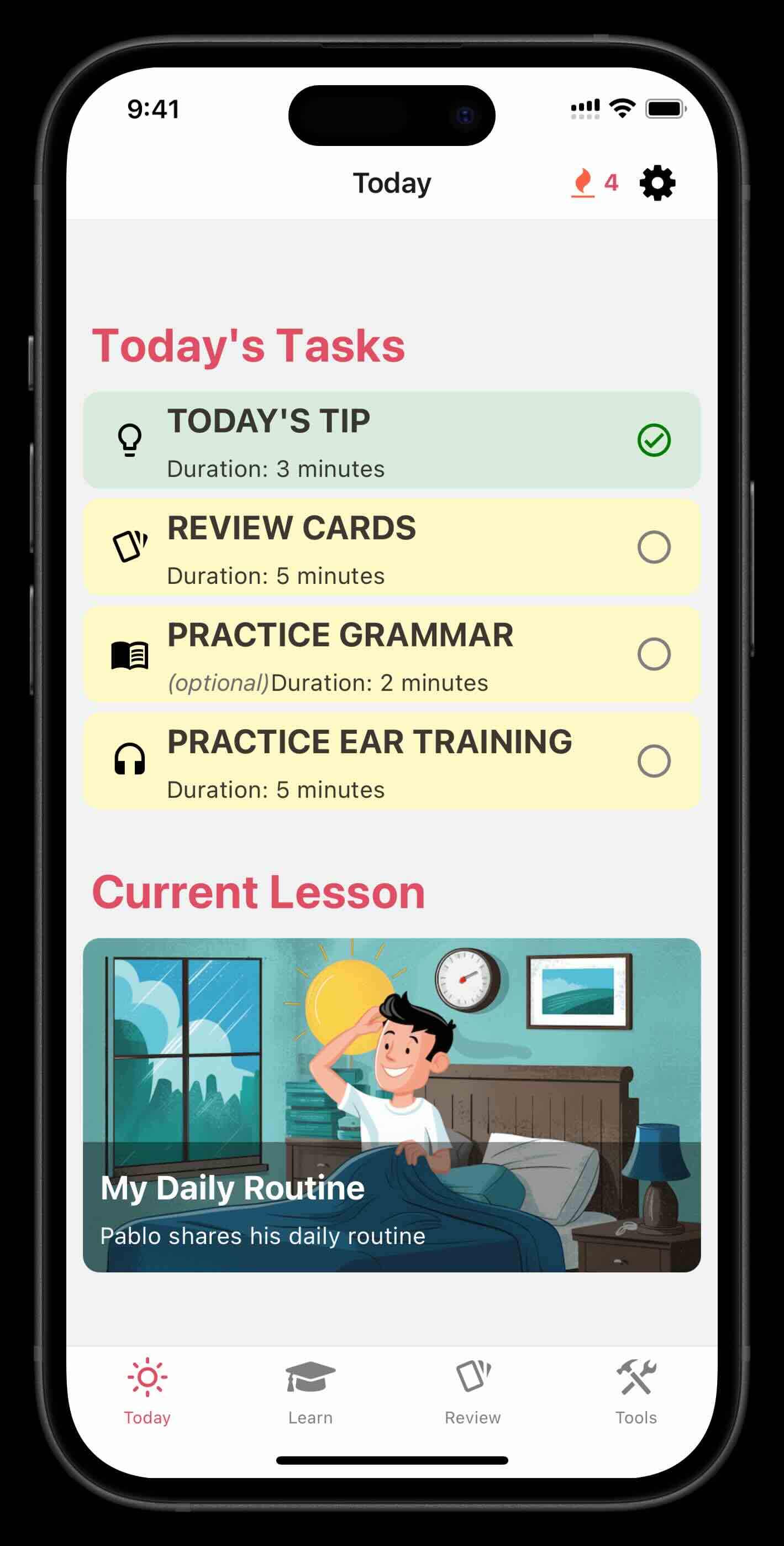 La nostra tecnologia premiata fornisce feedback specifici su come migliorare in pochi secondi. Ascolta la pronuncia dei madrelingua, guarda video che mostrano i movimenti della bocca e continua a migliorare con la pratica quotidiana.