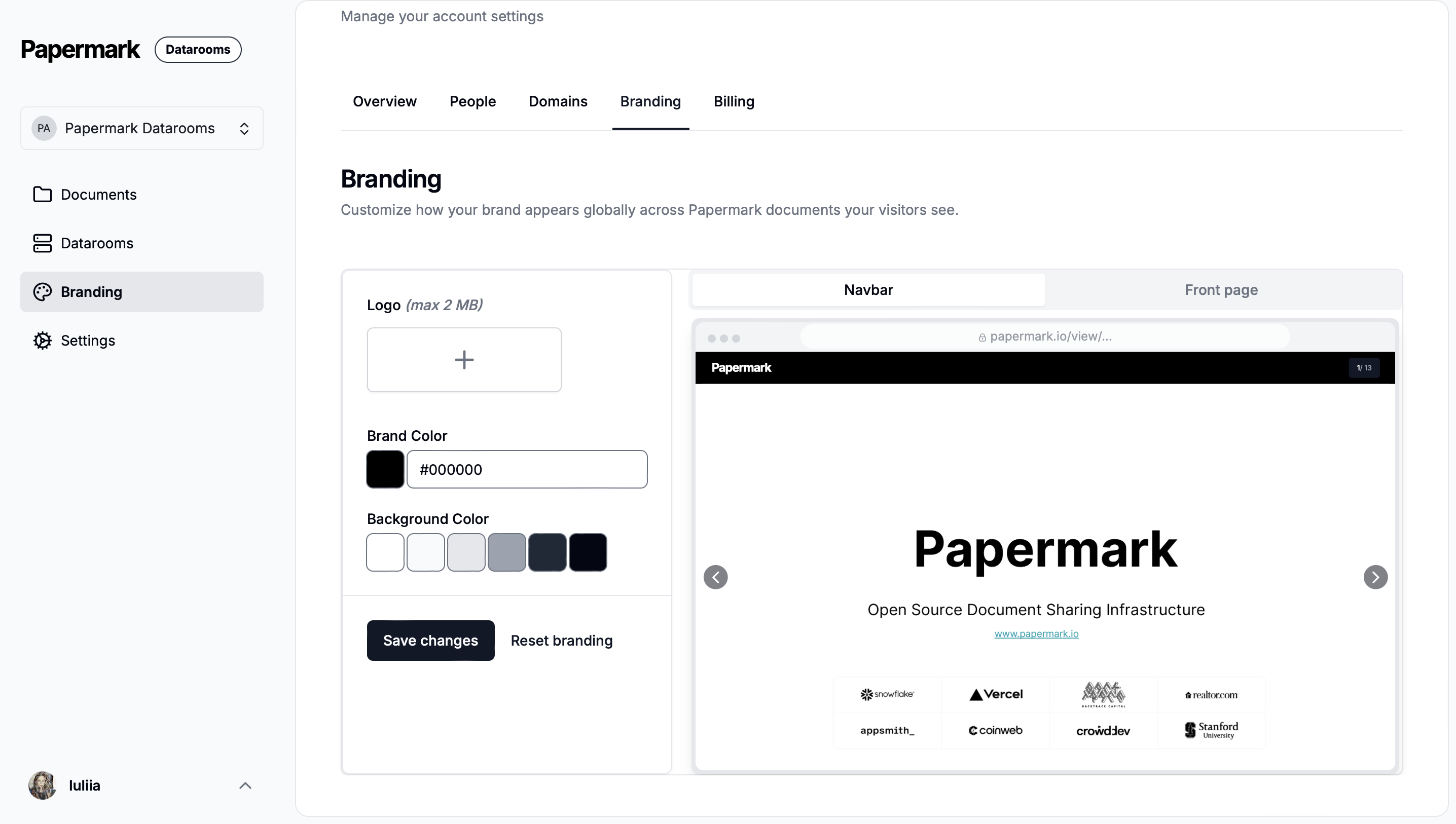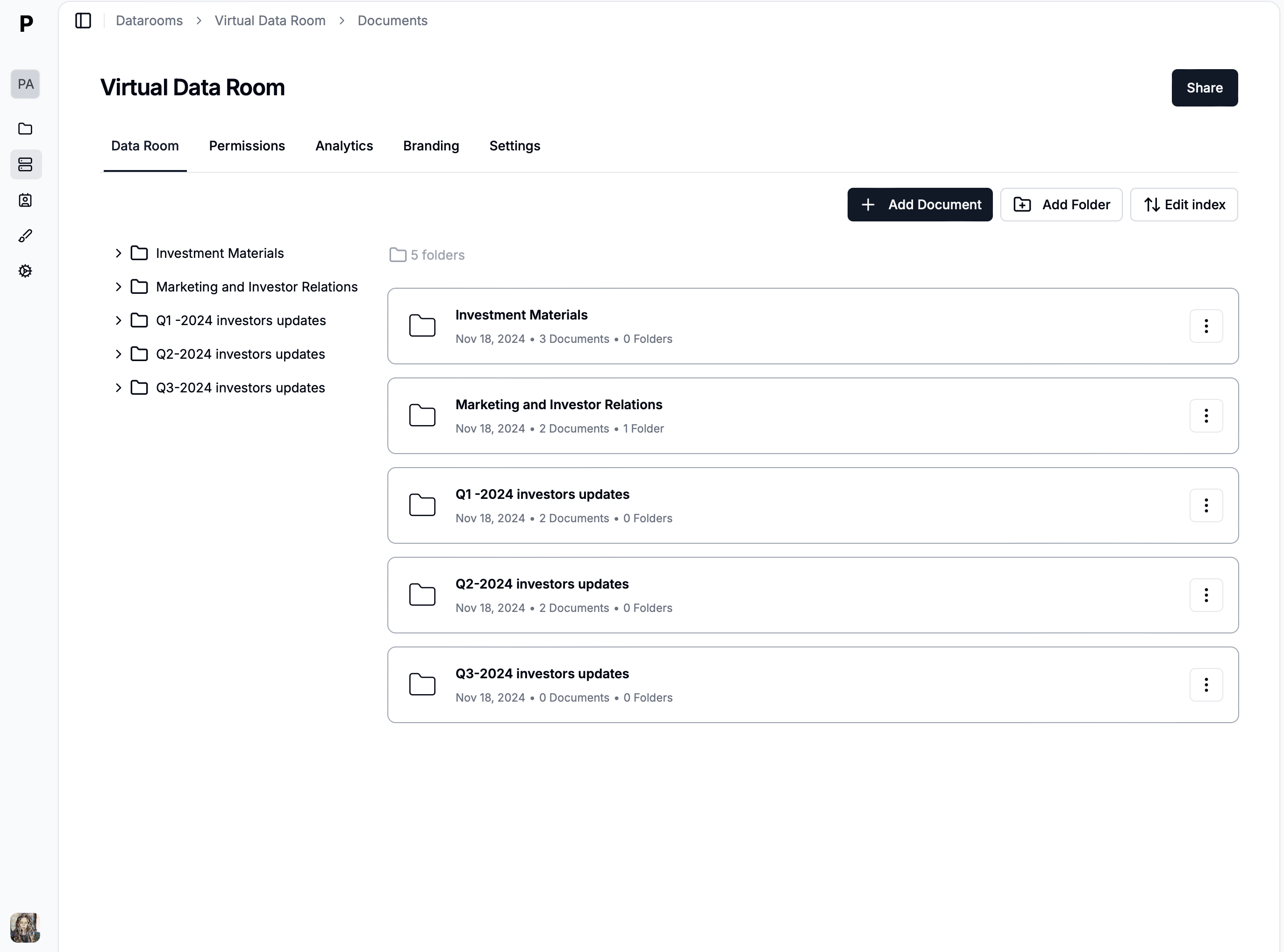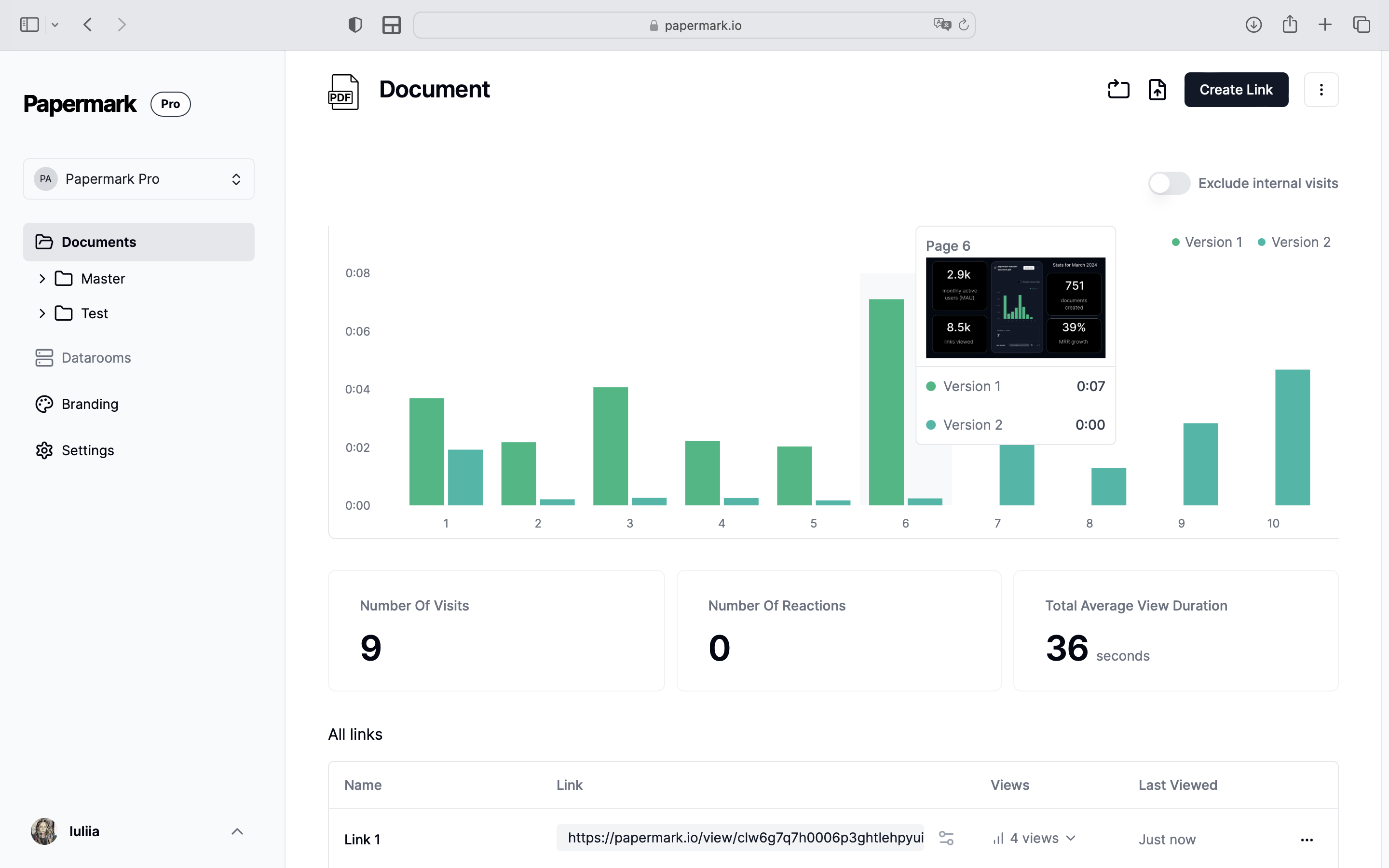 È open source, quindi c'è l'opzione di ospitarlo autonomamente. Offre analisi pagina per pagina, tempo trascorso, informazioni sui visitatori (dispositivo/browser) ecc. Viene richiesta un'autorizzazione granulare come password, consenti/nega. Supporta diversi formati di file come PDF, PPTX, docx, fogli, caricamento in blocco, collegamento di data room a molti documenti. Buon sistema di supporto. Recensione raccolta e ospitata su G2.com.