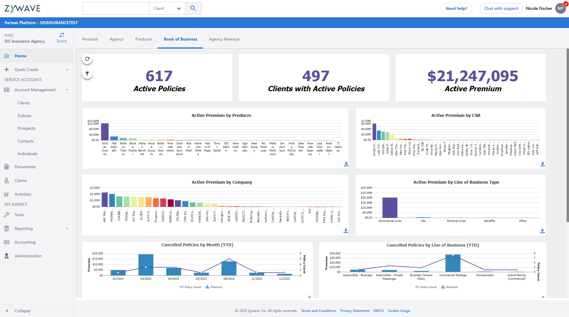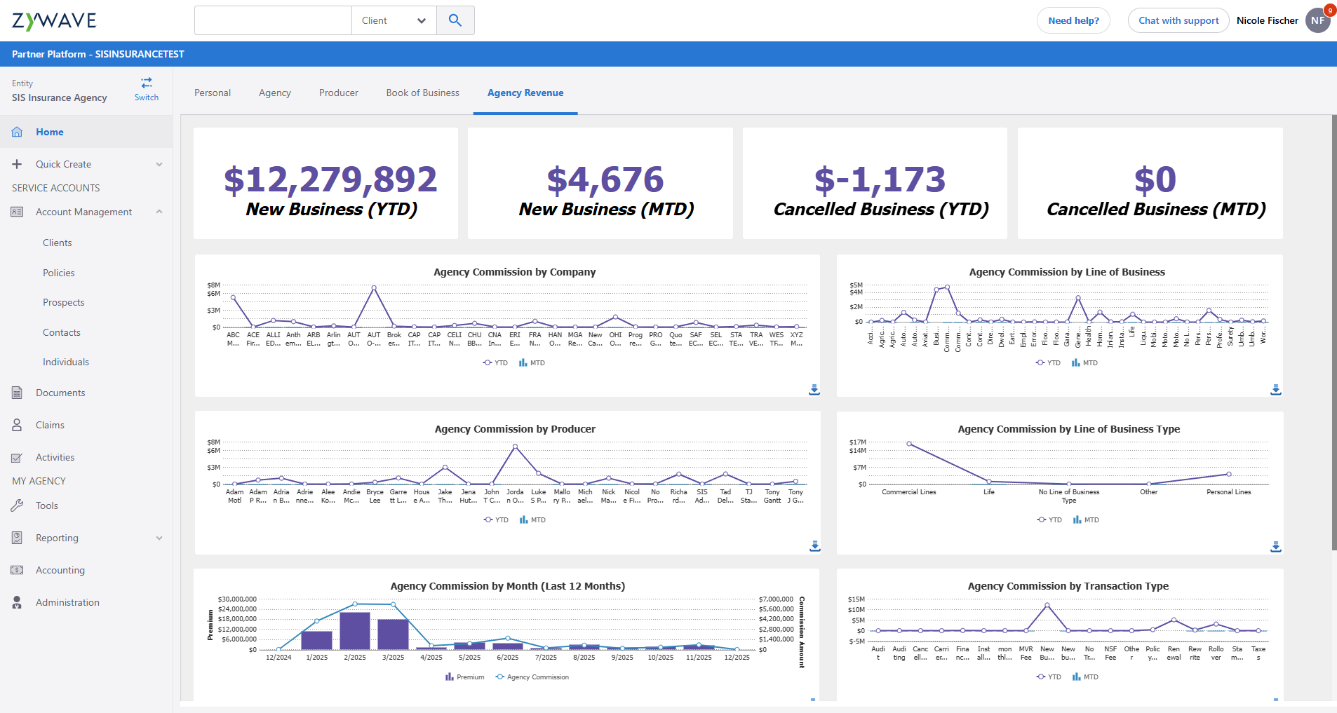 Reportistica operativa e analisi: Le funzionalità di reportistica ti aiutano a gestire tutti gli aspetti delle informazioni di contatto, polizza e finanziarie dei tuoi clienti, fornendo approfondimenti in tempo reale su fidelizzazione e entrate mentre semplificano la gestione dei rinnovi e semplificano i flussi di lavoro di contabilità e libro degli affari.