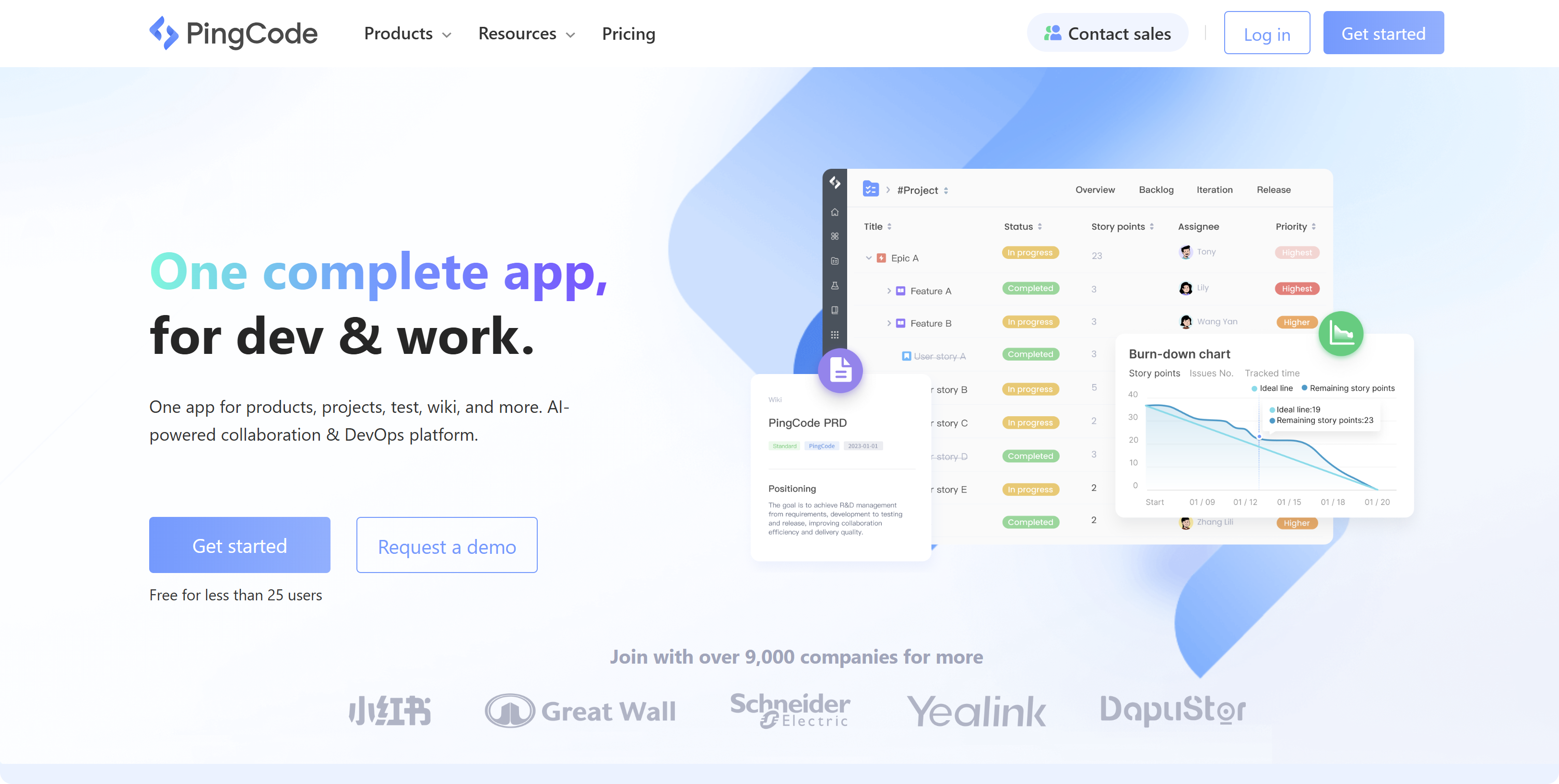 PingCode è potente e bello per team di 300 membri con i seguenti vantaggi: