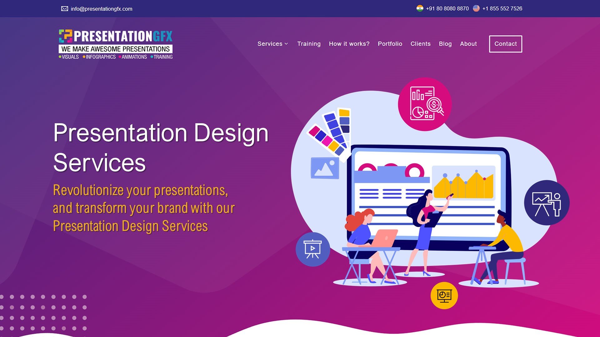 Presentation.Support è un'azienda di servizi di design per presentazioni che offre progetti di alta qualità per pitch deck per investitori, diapositive per conferenze, design di presentazioni da utilizzare in presentazioni di vendita, roadshow per investitori e campagne di marketing. Come organizzazione di rappresentazione visiva, assistiamo i marchi con progetti convincenti e potenti. Con oltre 1,5 milioni di ore di lavoro, abbiamo collaborato con più di 400 marchi in diversi settori nel mondo. Che tu stia presentando a investitori, competendo per clienti o promuovendo il tuo marchio in questo mondo sempre più competitivo; il nostro team innovativo e altamente esperto garantisce di fornire un messaggio orientato al pubblico solido. Che si tratti di un progetto di presentazione aziendale, di un video esplicativo animato basato su PowerPoint per un nuovo team o il lancio di un servizio, siamo lieti di connetterci e discutere il tuo prossimo progetto di design.