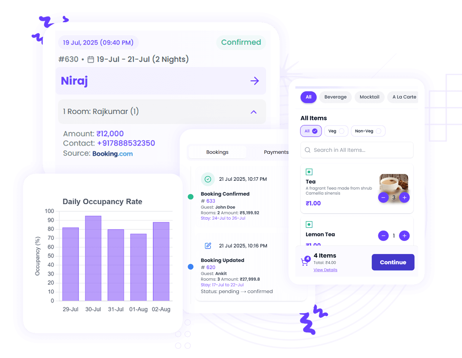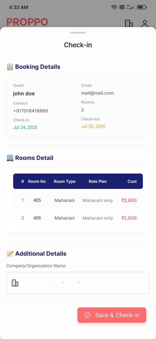 - Check-in e Check-out: Semplifica gli arrivi e le partenze degli ospiti catturando i dettagli, assegnando le camere e generando fatture senza sforzo.