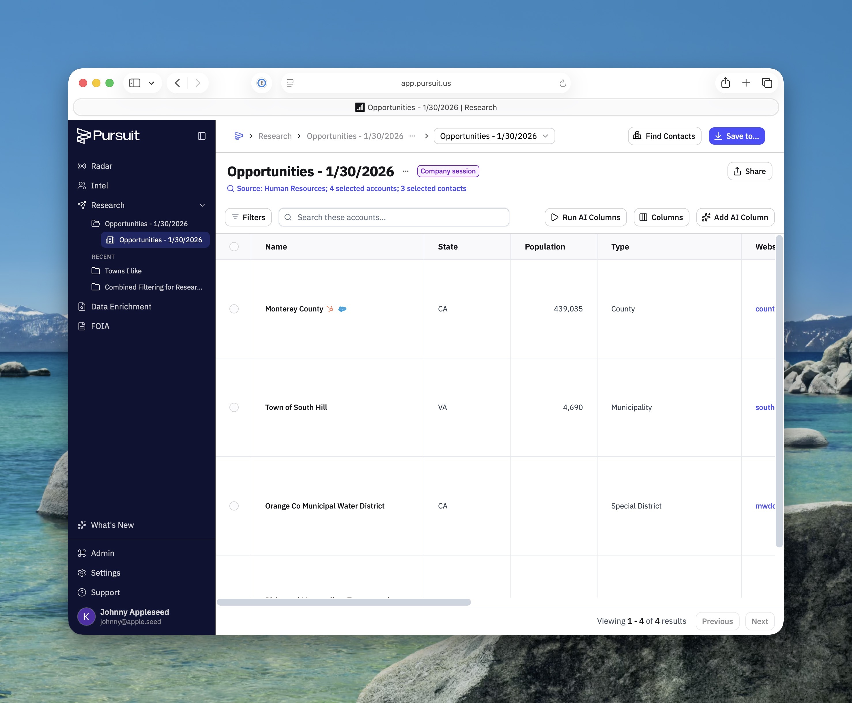 Pursuit è facile da usare e intuitivo. Lo strumento è particolarmente utile per raccogliere e organizzare informazioni aziendali, contatti e dettagli chiave, il che consente di risparmiare tempo e mi permette di rimanere concentrato sui miei obiettivi specifici. Anche i frammenti di segnale sono una grande caratteristica, rendendo facile scansionare rapidamente le informazioni rilevanti e approfondire quando necessario.