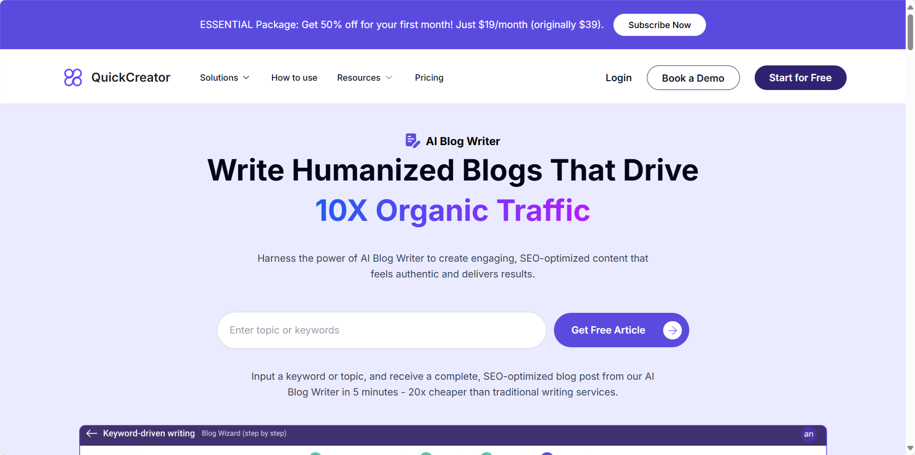 Quick Creator si distingue perché, a differenza della maggior parte degli scrittori AI che utilizzano solo conoscenze obsolete, ricerca Google in tempo reale per offrirti fatti aggiornati e argomenti di tendenza. Il flusso di lavoro ti guida attraverso la ricerca degli argomenti, la creazione di schemi e la stesura degli articoli, risultando in post ben strutturati, accurati e ottimizzati per la SEO che rivaleggiano con quelli che produrrebbe uno scrittore umano.