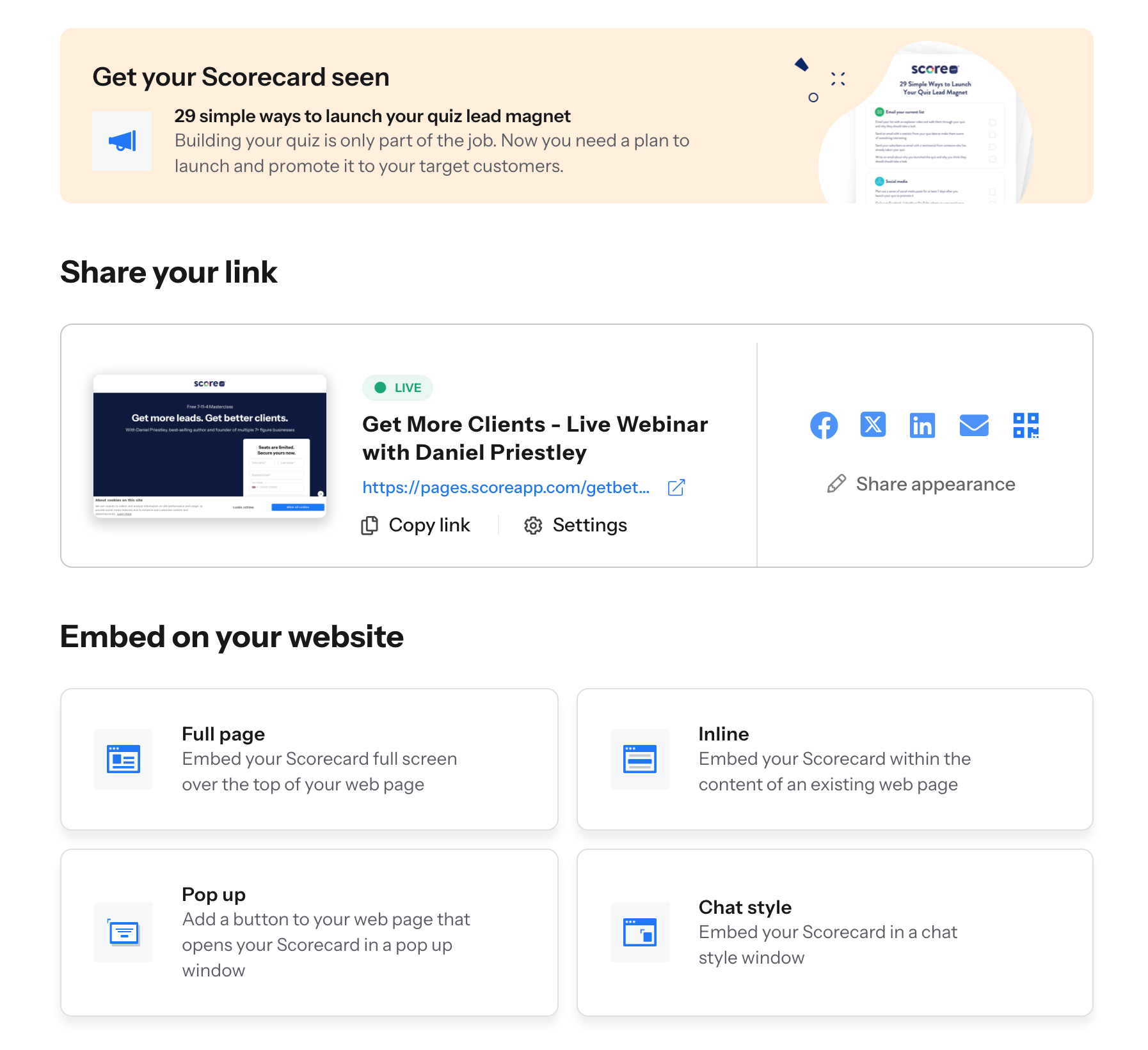 Fai parte del team ScoreApp? Aggiorna il tuo piano per migliorare il tuo branding e interagire con i visitatori del tuo profilo!