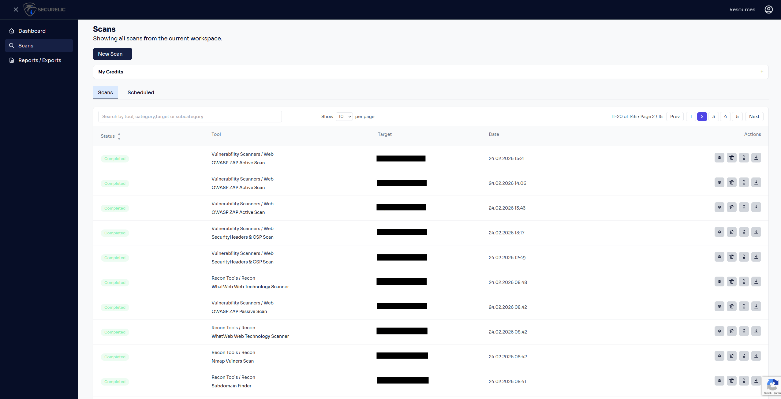 - Un cruscotto brillante e luminoso che visualizza pentesting gestito automatico e manuale