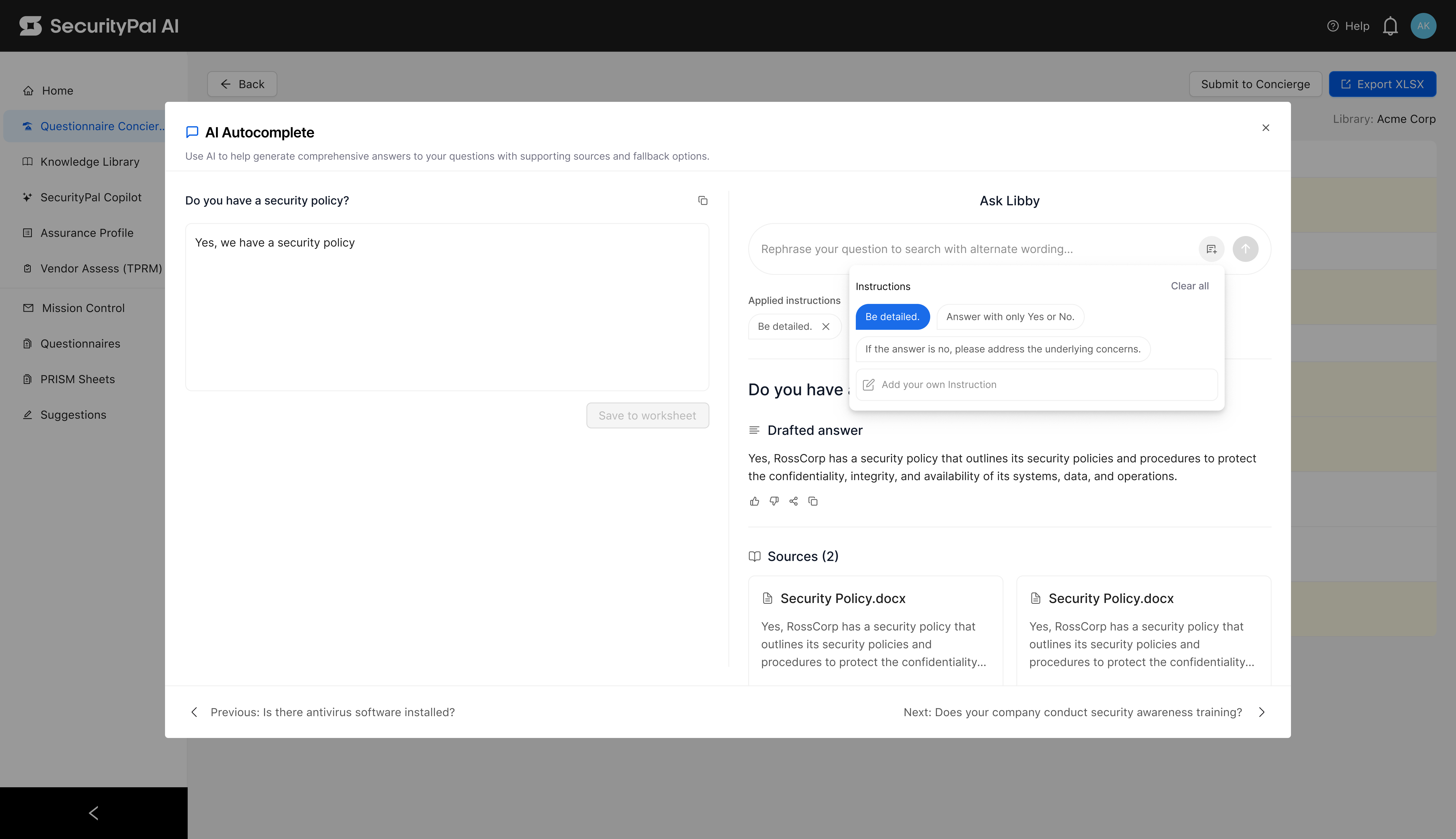 - Automazione dei Questionari di Sicurezza: Semplifica il processo di risposta ai questionari di sicurezza automatizzando le risposte, risparmiando tempo e garantendo coerenza.
