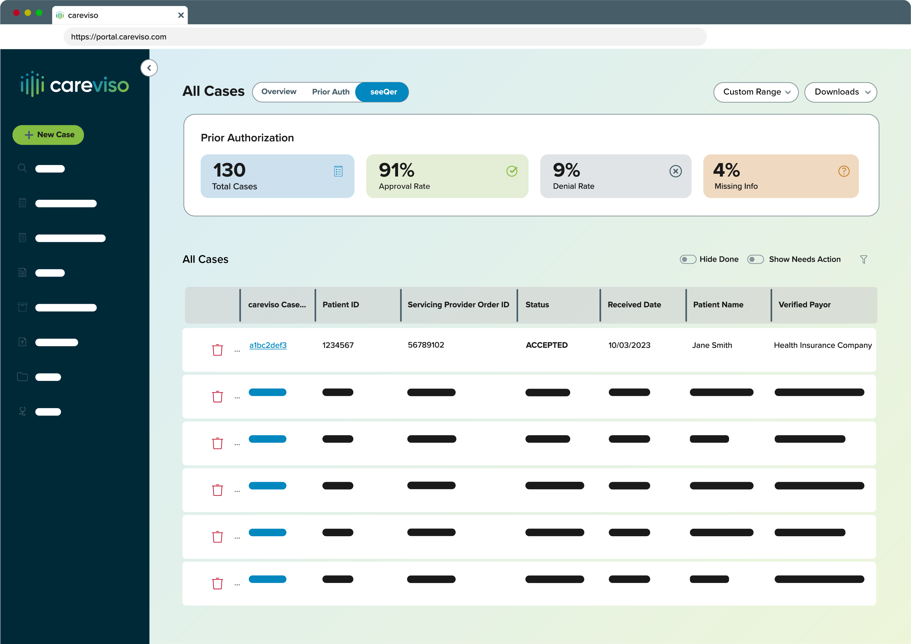 La tecnologia di Valer accelera e semplifica l'autorizzazione preventiva e la gestione dei rinvii automatizzando le sottomissioni, il controllo dello stato, la verifica, la reportistica e la sincronizzazione EHR in tutti i tuoi contesti sanitari, specialità e pagatori da un'unica piattaforma e portale.