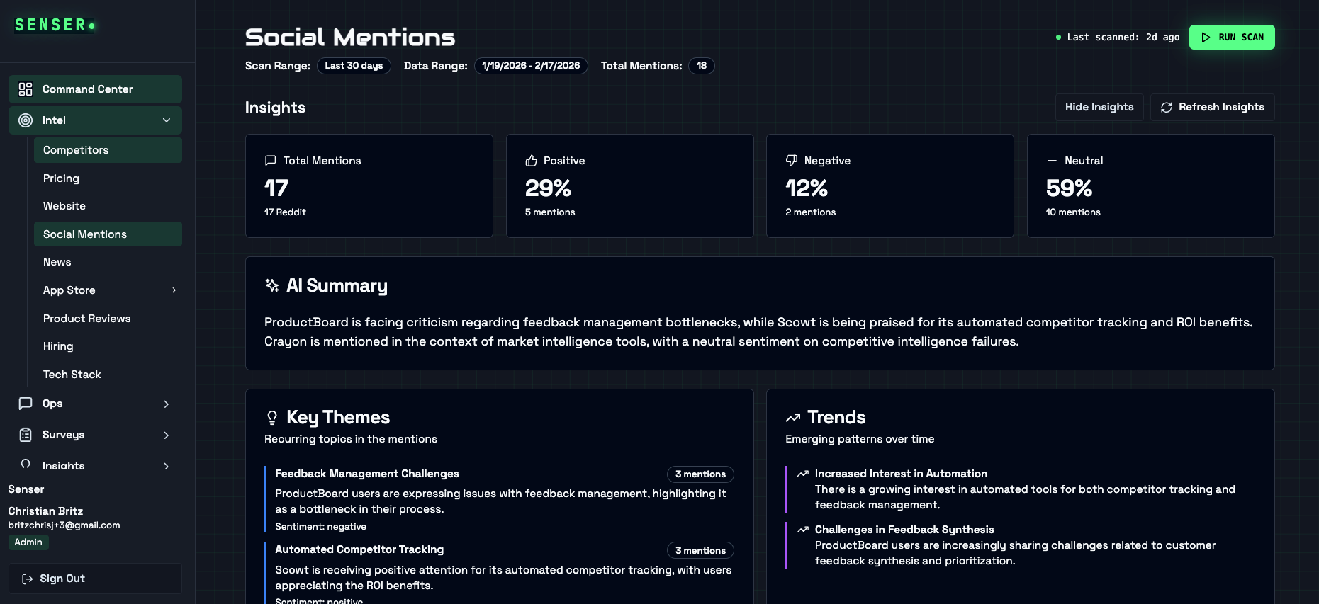 SaaS per l'analisi della concorrenza, l'ottimizzazione dei contenuti, la gestione SEO, l'intelligence di mercato, le intuizioni pubblicitarie e la creazione di contenuti guidata dall'IA.