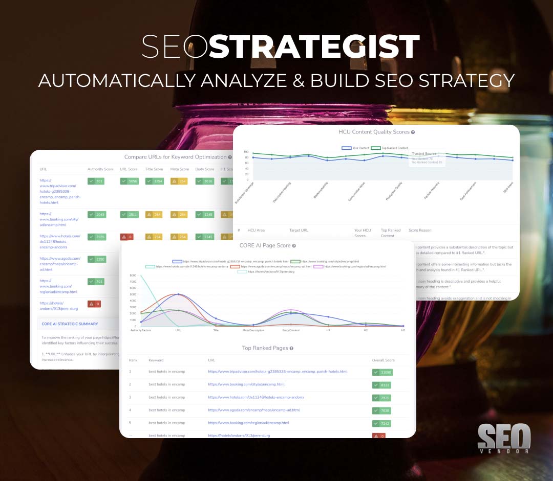 La suite di strumenti e servizi basati sull'intelligenza artificiale di SEO Vendor è progettata per semplificare e migliorare gli sforzi di marketing digitale delle aziende. Automatizzando compiti SEO complessi e fornendo approfondimenti basati sui dati, questi strumenti aiutano gli utenti a migliorare il posizionamento nei motori di ricerca, aumentare il traffico organico e stimolare la crescita aziendale. L'impegno dell'azienda per l'innovazione e le soluzioni su misura garantisce che i clienti ricevano strategie allineate alle loro esigenze uniche, portando a un successo sostenibile nel panorama digitale.