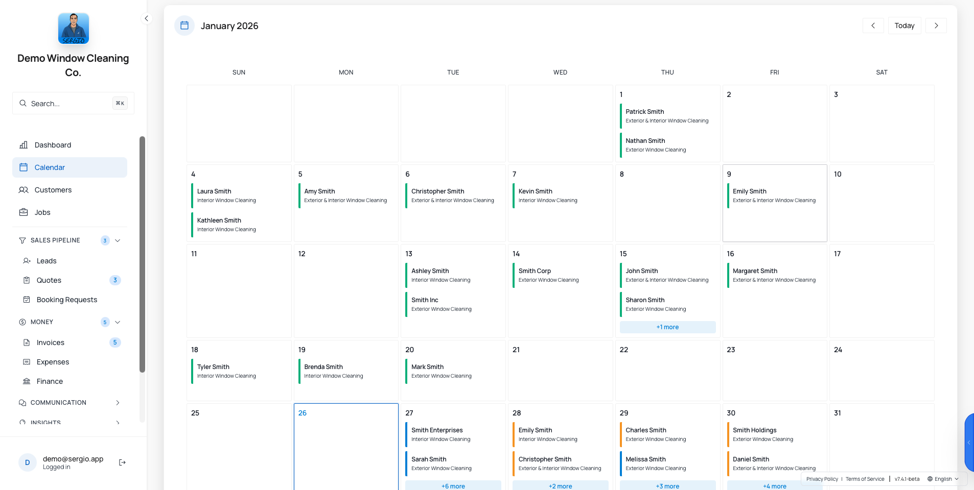 Software di prenotazione e pianificazione online per servizi di pulizia e imprese di pulizie. Facile da usare e super semplice per programmare le tue domestiche, automatizzare i promemoria via email/sms e altro ancora. Siamo lo standard d'oro se stai cercando un sistema di calendario per gestire il tuo servizio di pulizia / impresa di pulizie.