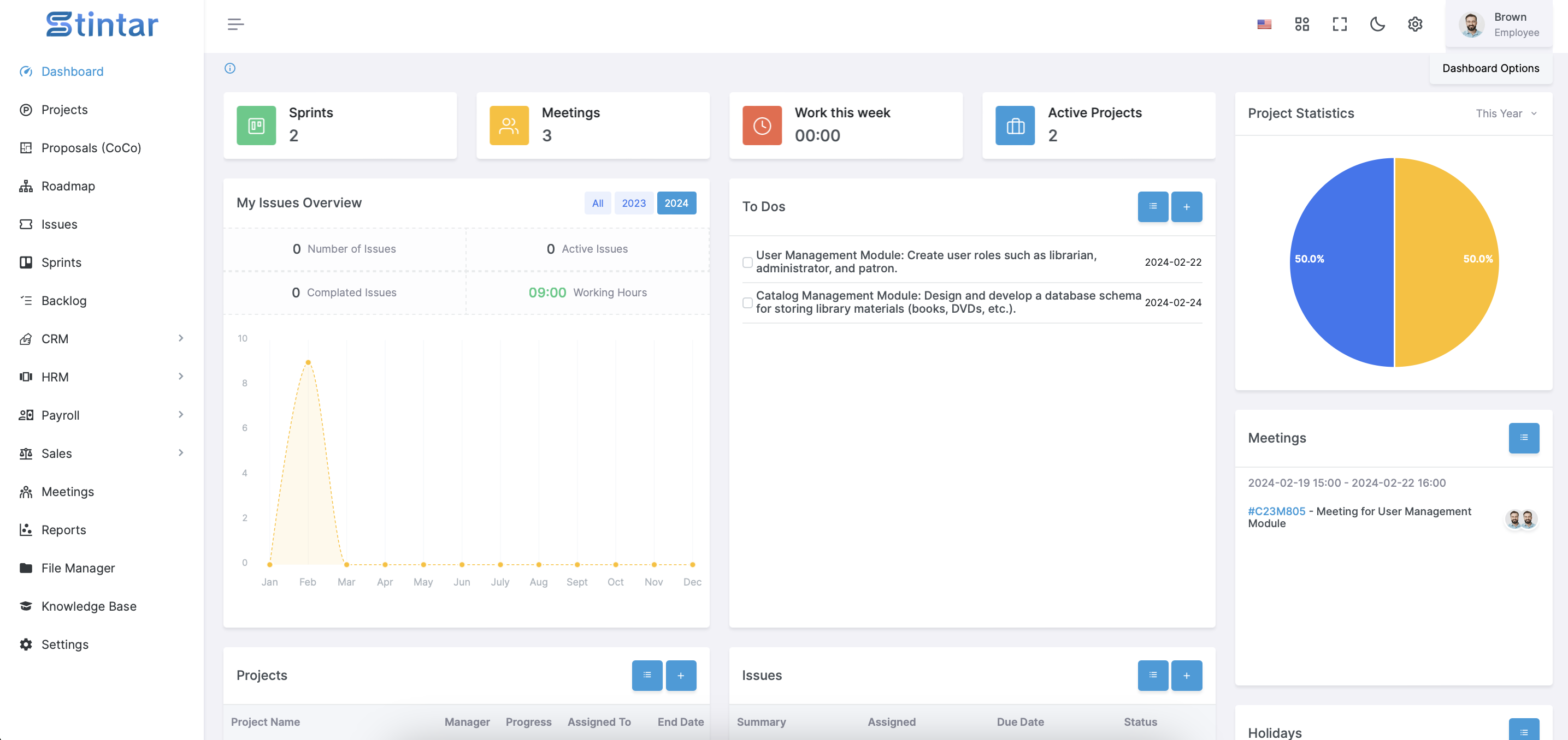 Inoltre, Stintar integra moduli CRM come gestione dei lead, tracciamento delle opportunità, gestione dei clienti, gestione delle campagne, fatturazione, tracciamento delle vendite, e moduli HRM inclusi gestione dei dipendenti, elaborazione delle buste paga, permessi basati sui ruoli, gestione delle ferie, coordinamento del team e altro ancora.