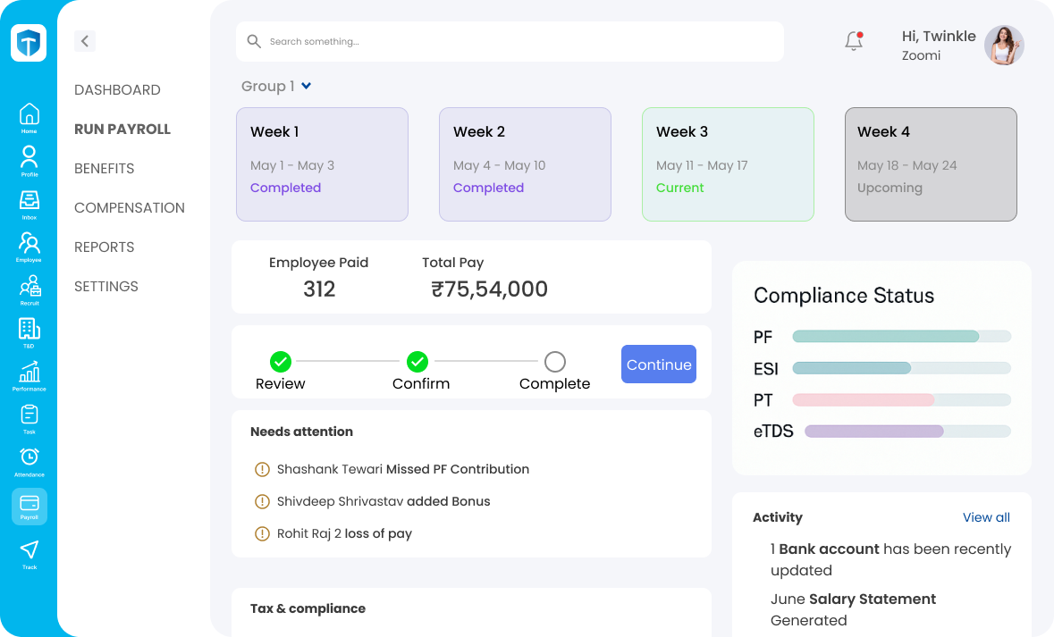 Quello che mi piace di più di TankhaPay è come semplifica tutto ciò che riguarda le risorse umane in un unico posto. Stipendi, presenze, monitoraggio delle prestazioni — è tutto lì ed è super facile da usare. Non devo più rincorrere cinque strumenti diversi. Inoltre, il loro team di supporto è molto reattivo, il che aiuta davvero quando sei bloccato o hai solo bisogno di una soluzione rapida. È facile da integrare con altri software. Anche il tempo di implementazione è molto breve. Recensione raccolta e ospitata su G2.com.