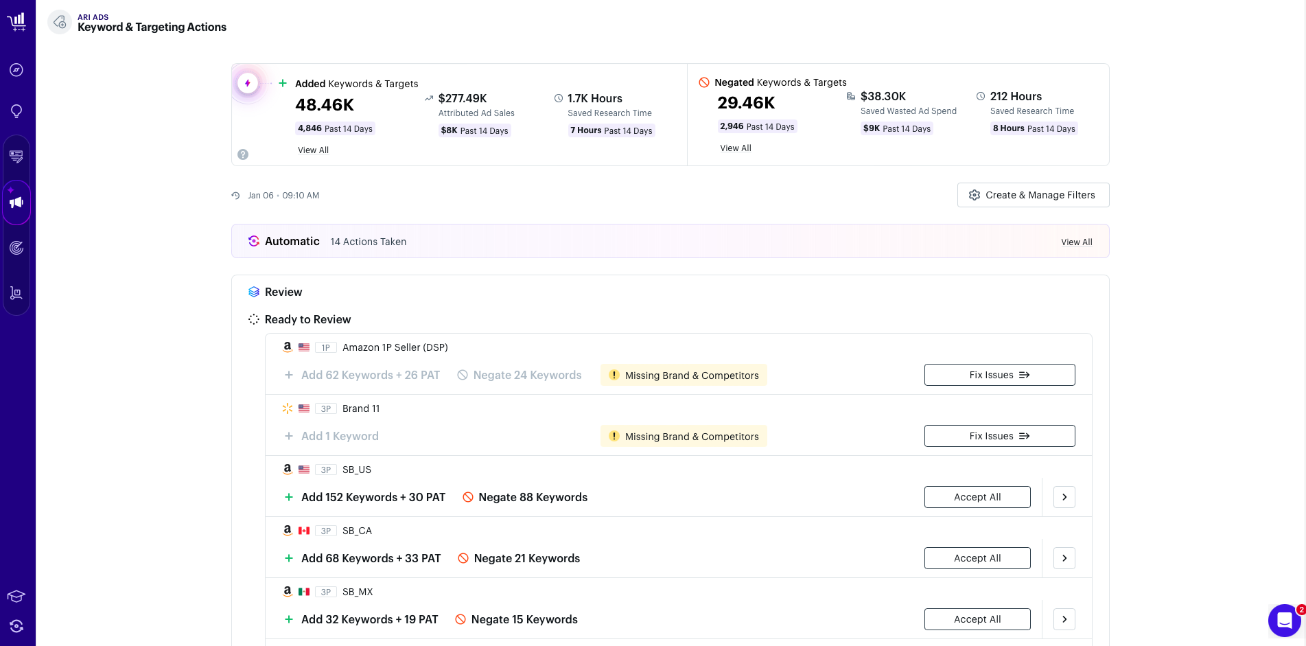 Mi piace molto Teikametrics come piattaforma e la trovo uno strumento molto utile, l'unico punto che noterei è che l'integrazione con i miei marketplace Amazon, sebbene molto facile, ha richiesto 2 o 3 giorni, il che è troppo lungo. Recensione raccolta e ospitata su G2.com.