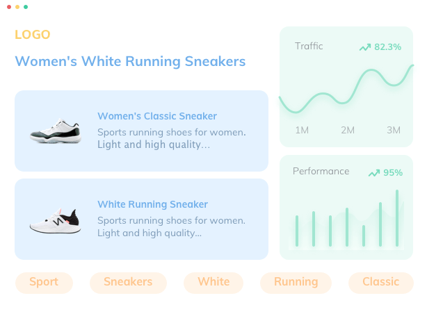Targetizza termini di ricerca molto specifici (come "scarpe da corsa in pelle nera da uomo taglia 10") che portano traffico più qualificato e spesso convertono meglio.