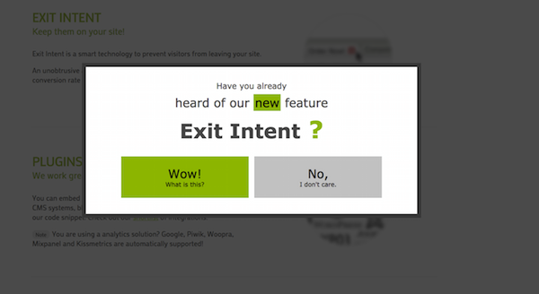 Exit Intent is a great way to reduce bounce rate and increase conversion rate.