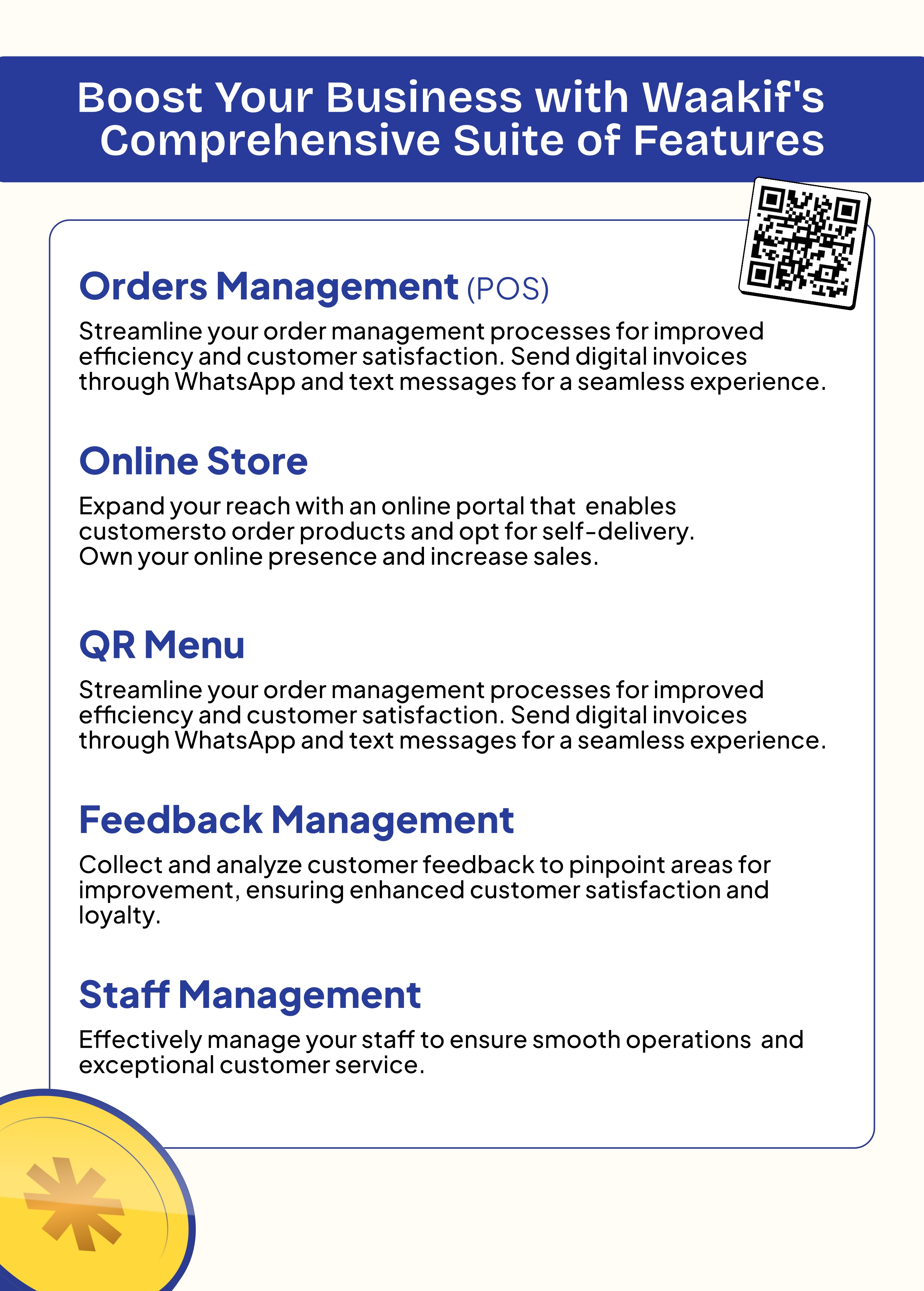 Abbiamo utilizzato principalmente per la fatturazione e il programma di fidelizzazione, ma il marketing su WhatsApp è stato molto utile, il grande vantaggio sono le intuizioni sui dati AI che sono state davvero utili. Ci piace molto la facilità di fatturazione e del negozio online. Miglior prodotto, siamo passati da Petpooja a Waakif. Recensione raccolta e ospitata su G2.com.