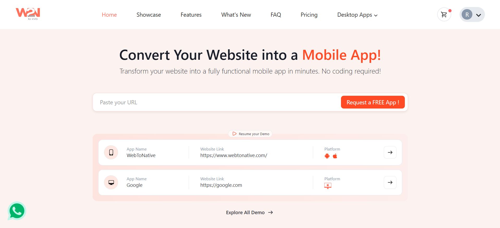 WebToNative è una soluzione completa per trasformare i siti web in app mobili completamente funzionali progettate per le piattaforme Android e iOS. Le aziende o le imprese possono progettare le loro app mobili senza competenze di programmazione o tecniche, senza partire da zero. Utilizzeremo la struttura e il contenuto del tuo sito web esistente in un'esperienza di app mobile nativa. Le app create con WebToNative sono ad alte prestazioni e offrono scalabilità a lungo termine per le aziende. Puoi trasformare il tuo sito web in app per Android, iOS, Desktop, Mac e Linux insieme ai loro servizi di pubblicazione efficaci. È un'opzione ideale per le aziende che vogliono la loro app ma non sanno come costruirla. Con un'interfaccia intuitiva, piani tariffari economici, servizi e supporto, puoi raggiungere l'obiettivo. La complessità di progettare e sviluppare la tua app che rifletta il tuo marchio o la tua attività è resa possibile senza programmazione, senza strumenti che richiedono tempo, senza costi di sviluppo o di progettazione per lanciare la tua app in pochissimo tempo senza mal di testa tecnologici. WebToNative si distingue per il suo impegno per le prestazioni e la compatibilità. Le app costruite sulla piattaforma sono leggere, si caricano rapidamente e ora sono completamente conformi agli ultimi standard mobili. I proprietari di aziende beneficiano di un pannello di amministrazione intuitivo, strumenti di gestione delle app facili e supporto flessibile per gli aggiornamenti senza la necessità di ripresentare ogni volta che vengono apportate modifiche minori. Con la nostra vasta gamma di funzionalità per il successo della tua app, come AdMob per la generazione di entrate, notifiche push, navigazione in-app e integrazioni Firebase, la tua app è ideale con tutte le funzionalità essenziali su un'unica piattaforma. Le loro funzionalità avanzate o integrazioni come lo scanner di codici a barre, la barra di navigazione inferiore avanzata, il login sociale e Appsflyer possono migliorare l'esperienza della tua app con un solo clic per integrare queste funzionalità avanzate nella tua app. Che tu stia cercando di aumentare il coinvolgimento dei clienti, migliorare la fidelizzazione o migliorare la portata mobile, WebToNative ti offre gli strumenti per trasformare il tuo sito web in un'app potente che si adatta alla crescita della tua attività.