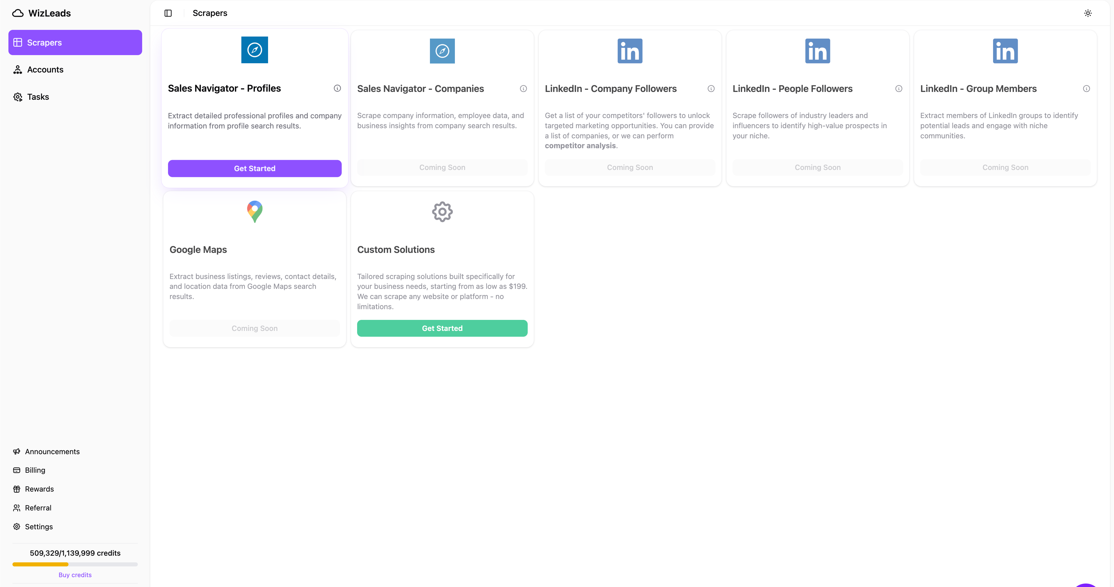WizLeads è una soluzione software basata su cloud per la generazione di lead e l'estrazione di dati che aiuta i team di vendita B2B, le agenzie di marketing e i reclutatori ad automatizzare il processo di costruzione di liste di potenziali clienti da LinkedIn Sales Navigator. La piattaforma funziona come un intermediario lato server che converte gli URL di ricerca standard in dataset strutturati e scaricabili, permettendo agli utenti di popolare i sistemi di Customer Relationship Management (CRM) e gli strumenti di contatto a freddo con informazioni di contatto verificate.